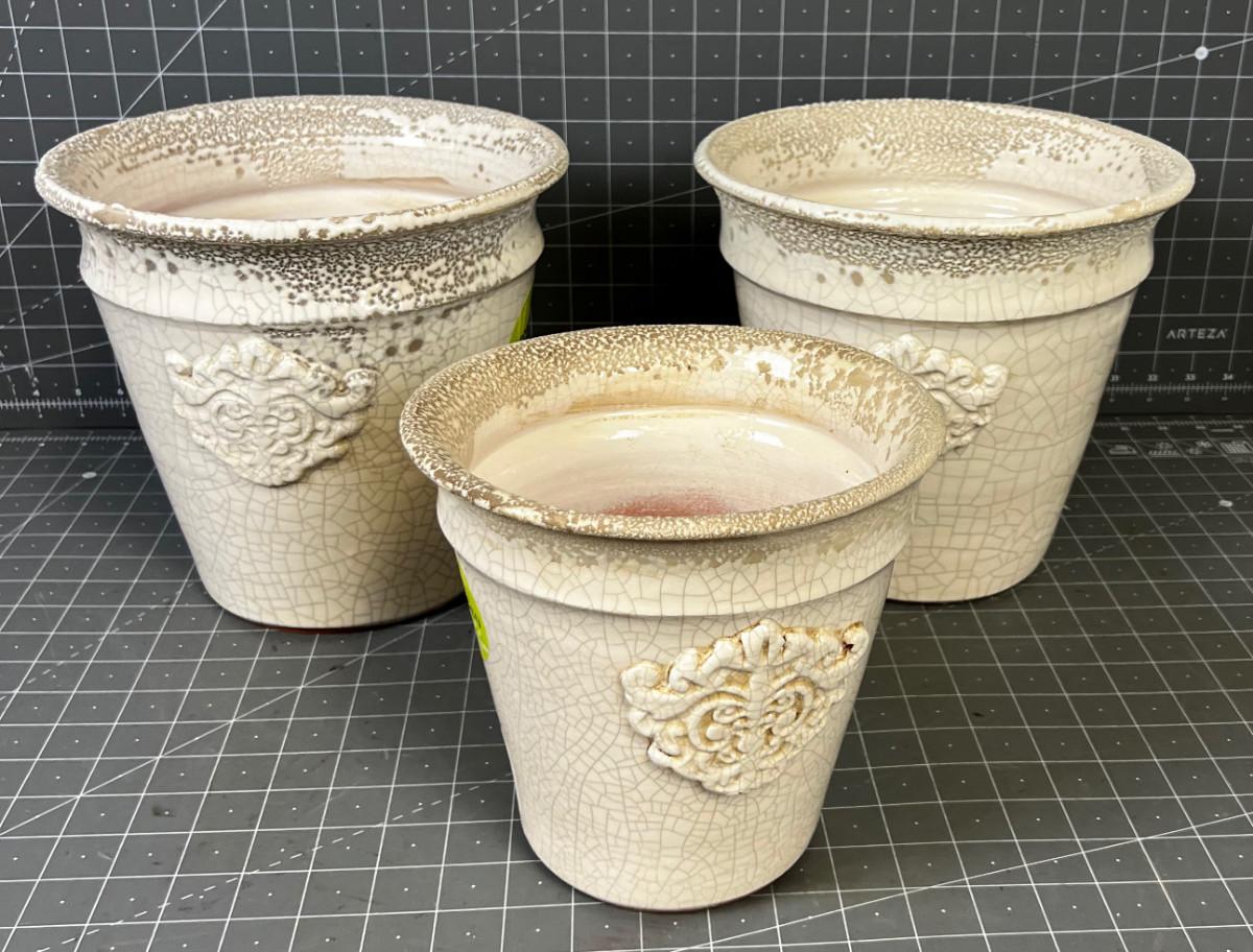2 8" Pots and 1 6" Pot Terra Cotta with a Glaze