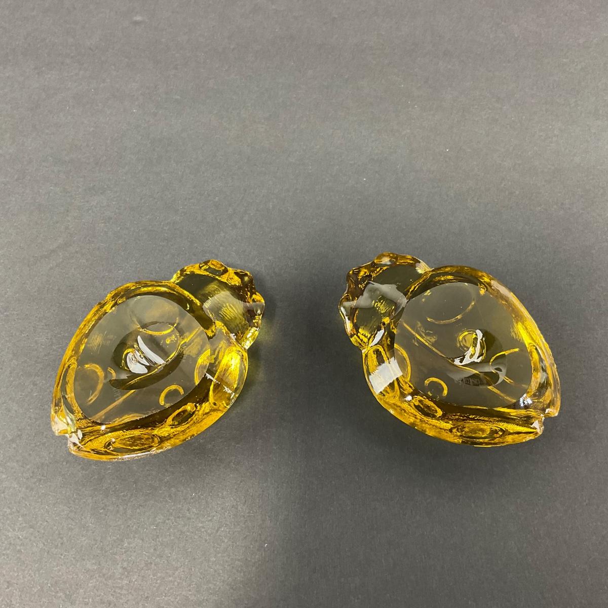 Two vintage Fostoria yellow glass lady bug figures. Both pieces are marked on the bottom. Booth pieces have some slight flea bits and chips at the edges but otherwise seem to be in good shape. Please see photos for details and condition. Any condition statement is given as a courtesy to a client, is an opinion, and should not be treated as a statement of fact. Reference to condition written, oral or within a condition report shall not be regarded as a full account of condition and may not include all defects, alterations, or restorations. Absence of a condition report does not imply a lot is flawless or lacking imperfections or damage. Katherine’s Auction & Appraisal Service shall have no responsibility for any error or omission. Returns shall not be accepted on the basis of condition. ::: Shipping is available on this lot. If you require shipping you must let us know at the close of the auction. We will coordinate with you after the item has been won. Shipping fees will include insurance up to or exceeding the value of all items being mailed. If you have any questions regarding this lot please contact the auctioneer either via this website, by direct email or by phone. PICK UP TIMES and other important information can be found in the TERMS and DESCRIPTION of the auction. Please take a look for pertinent information. Thanks!
