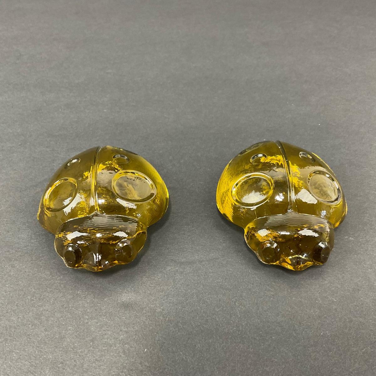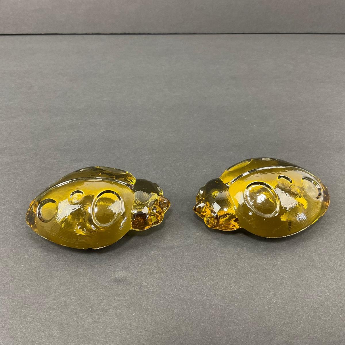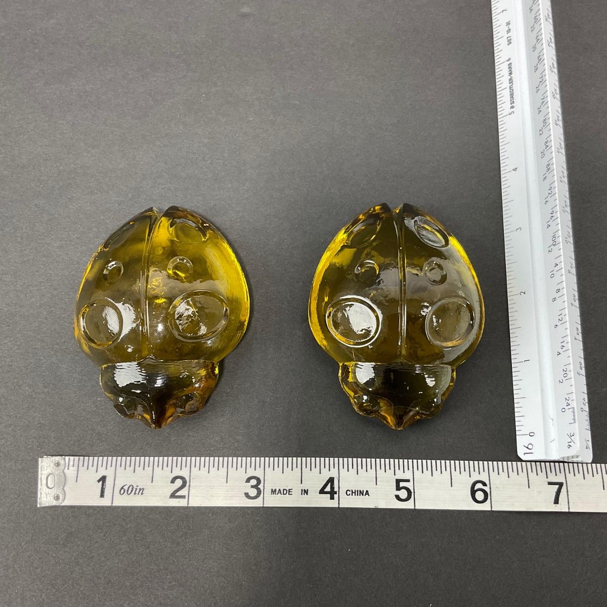 -3- FOSTORIA | Yellow Glass Lady Bugs | Marked
