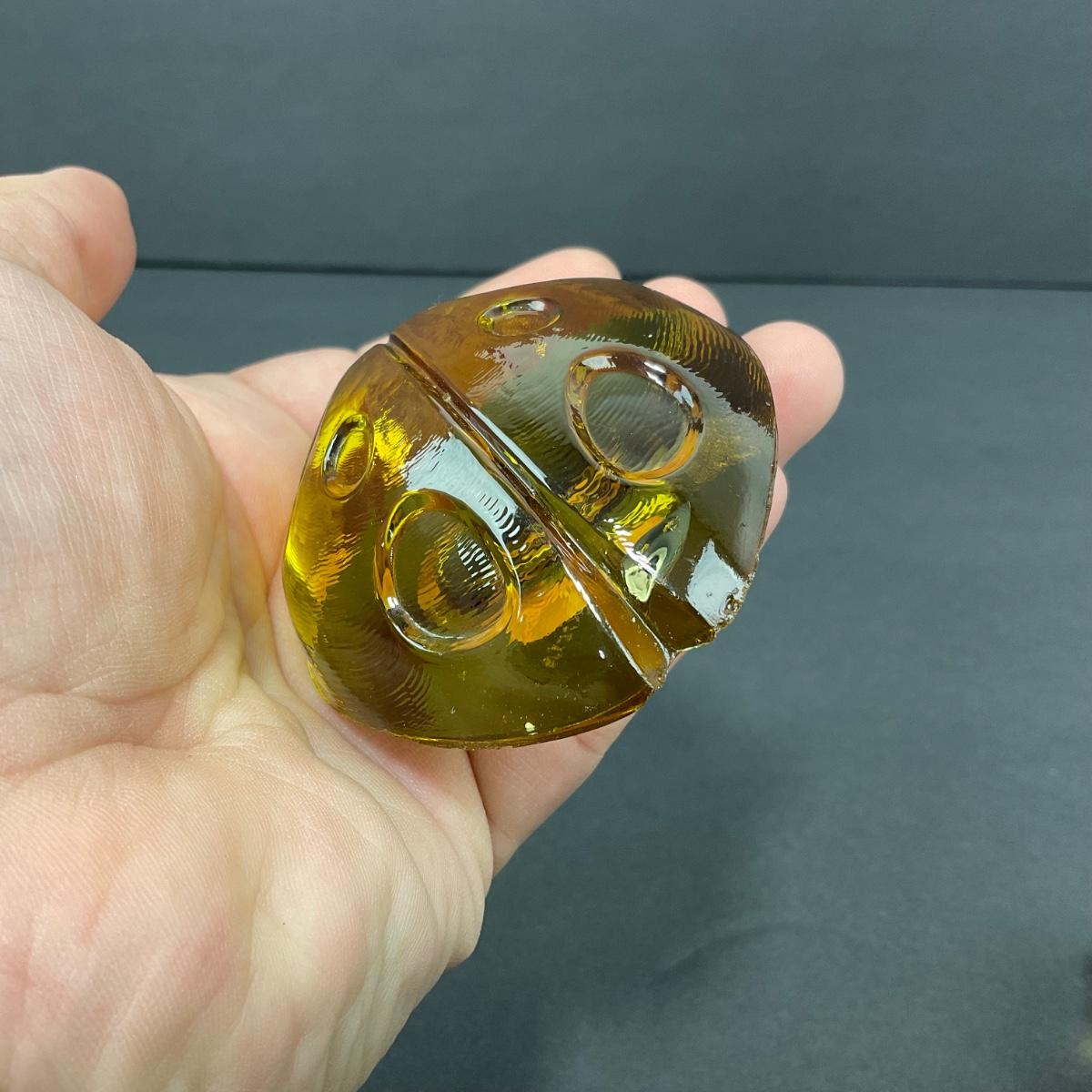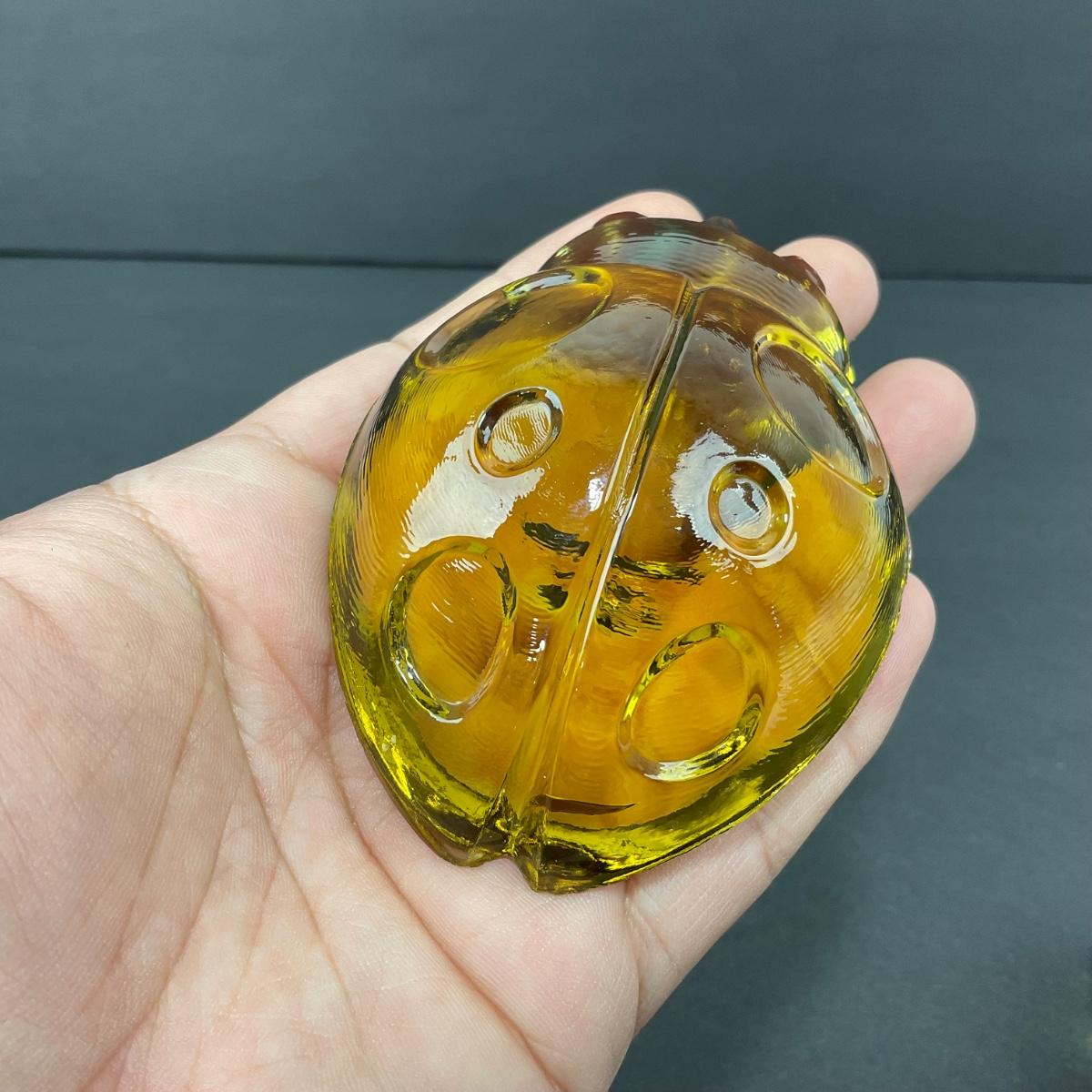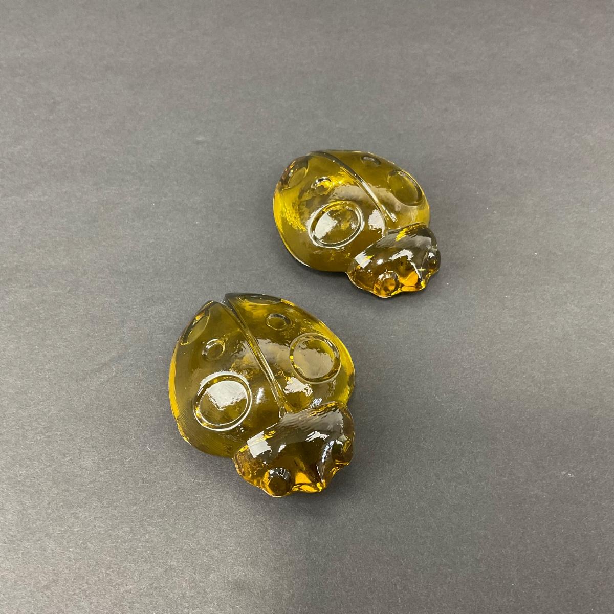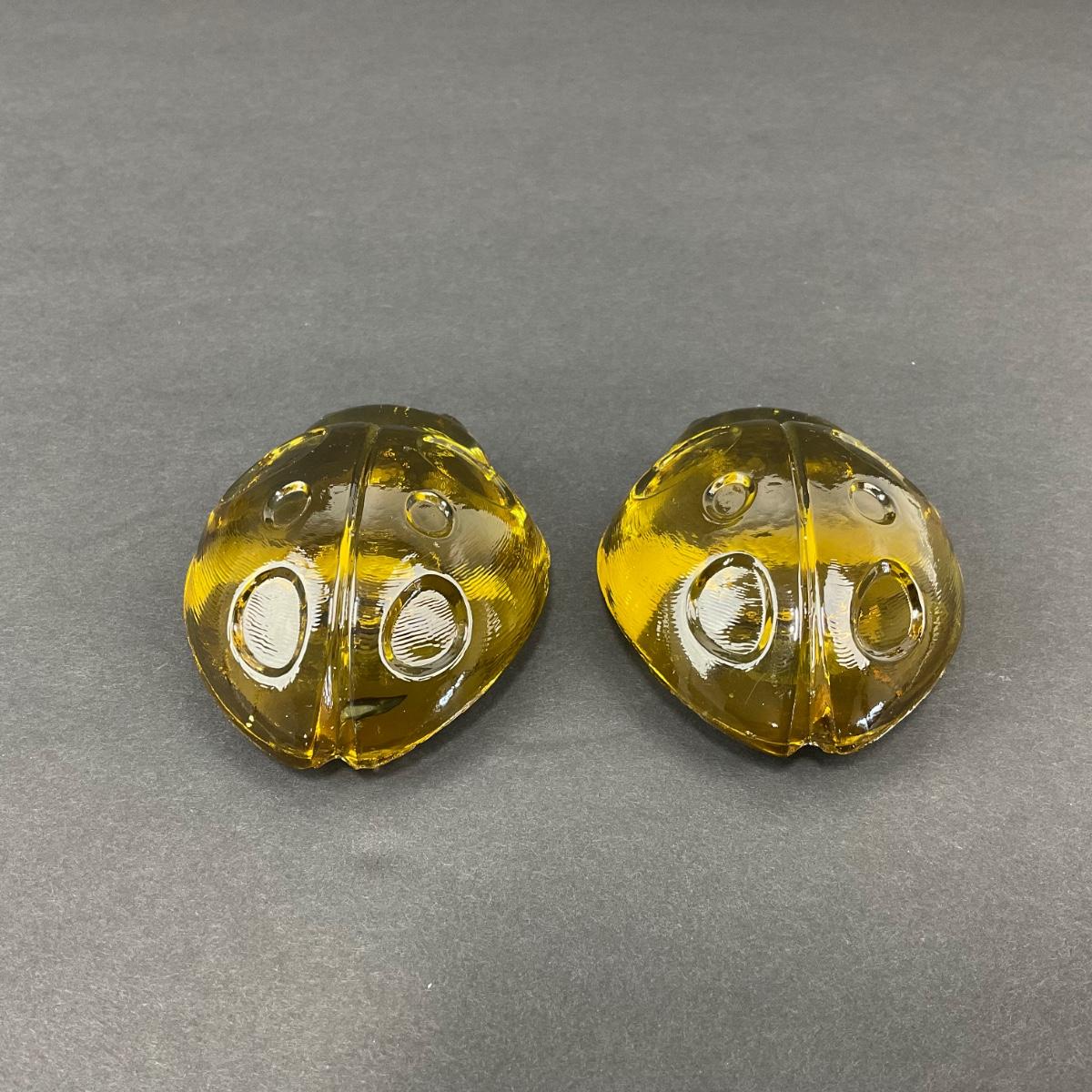 -3- FOSTORIA | Yellow Glass Lady Bugs | Marked