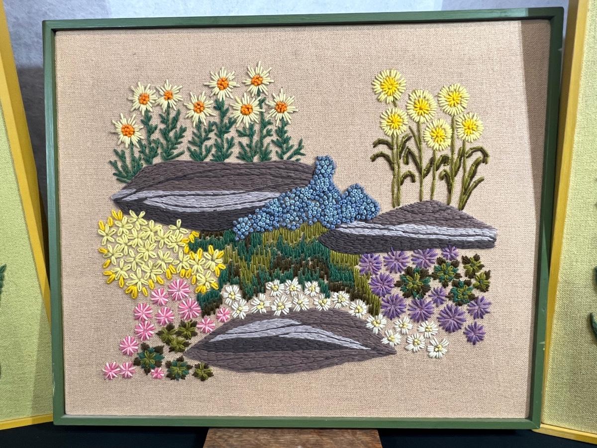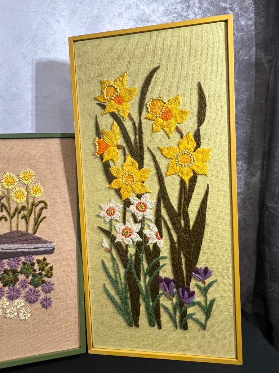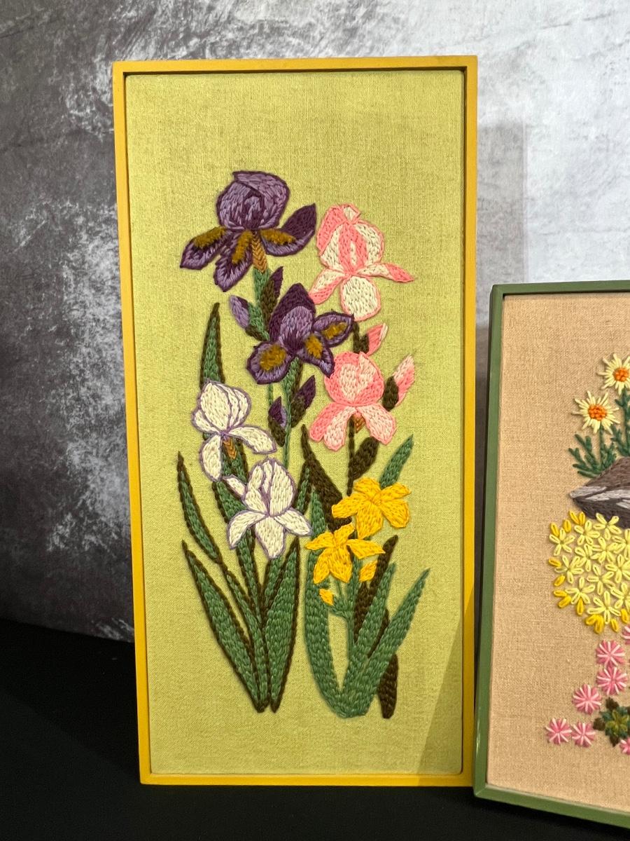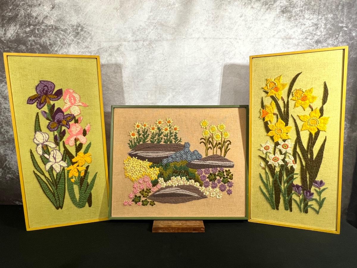 3 Framed 70's Ebrombroder Flowers, 1 @ 18"x22" & 2 @ 12"x26"