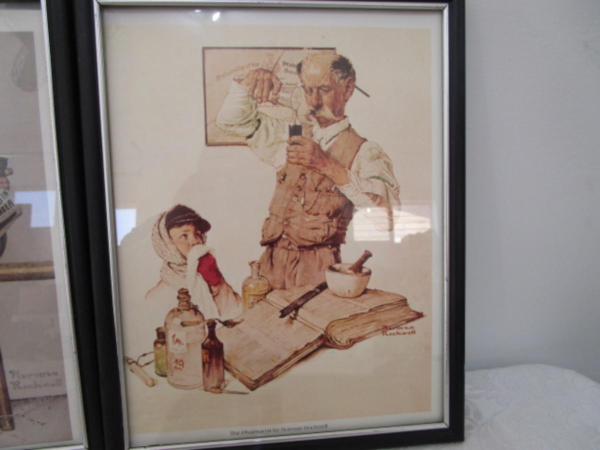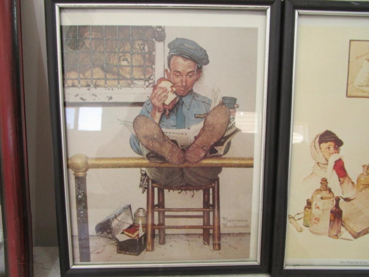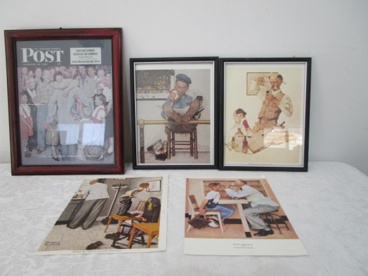 3 framed Norman Rockwell pictures, 2 unframed Norman Rockwell pictures