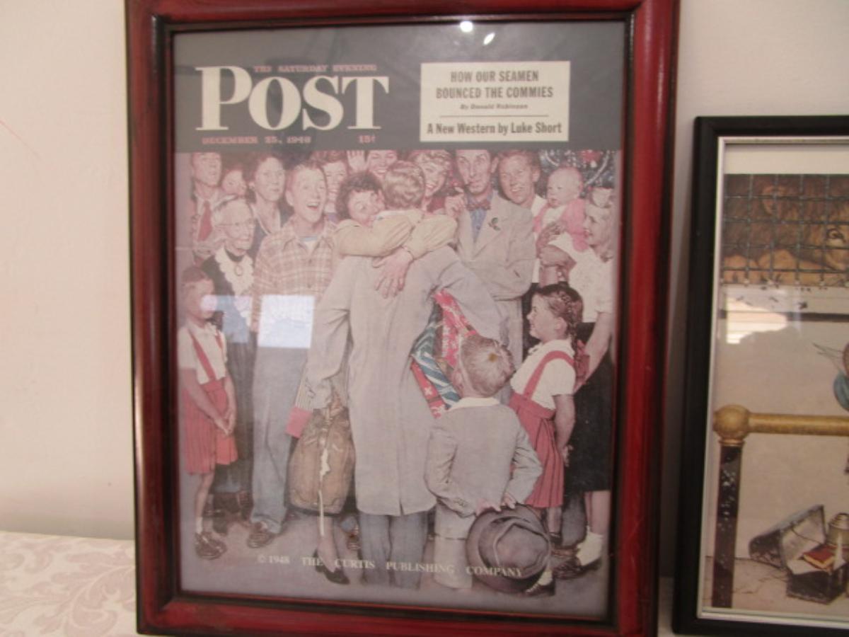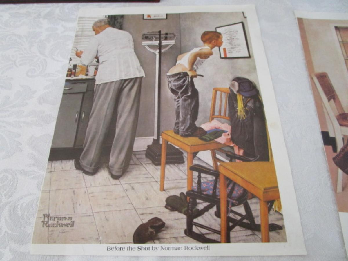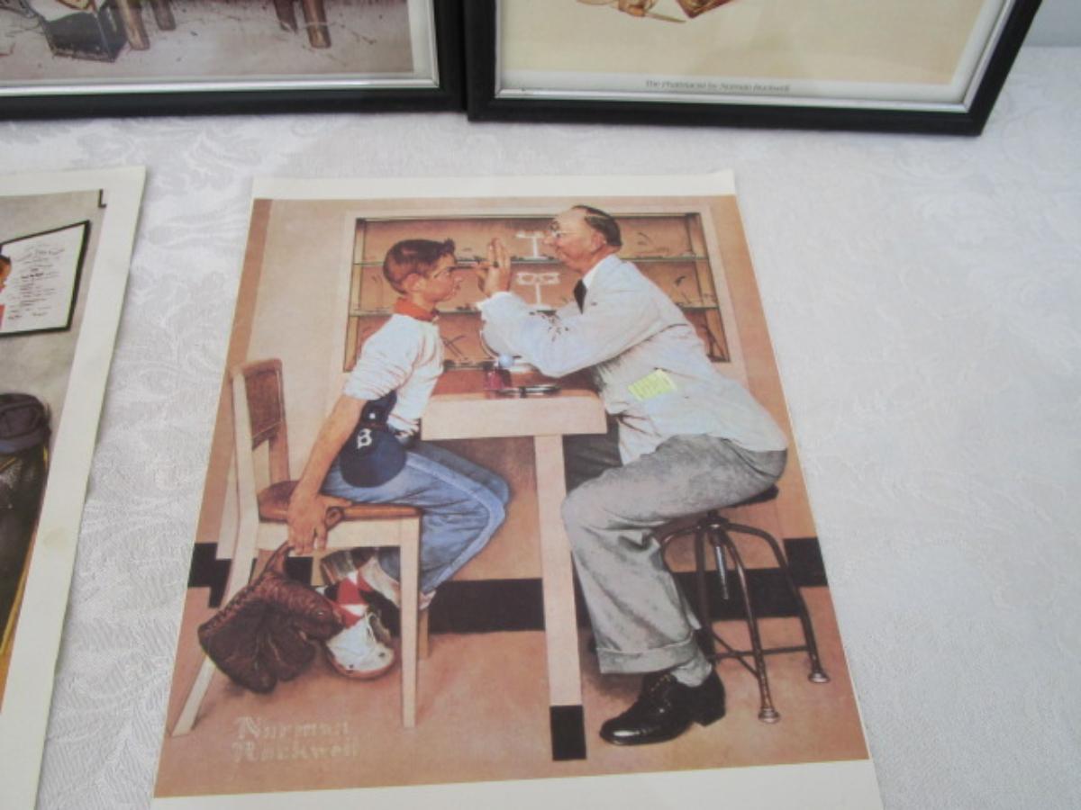 3 framed Norman Rockwell pictures, 2 unframed Norman Rockwell pictures