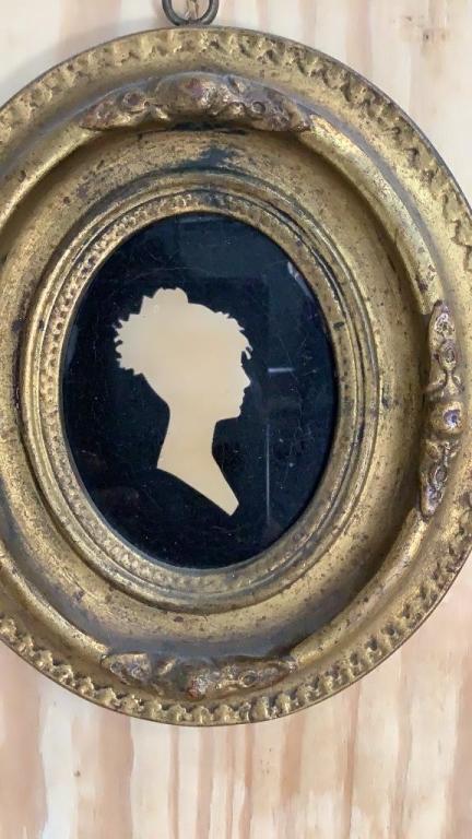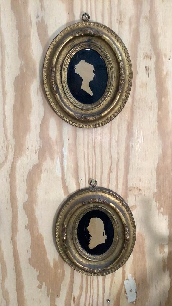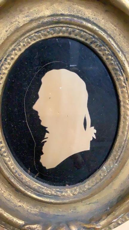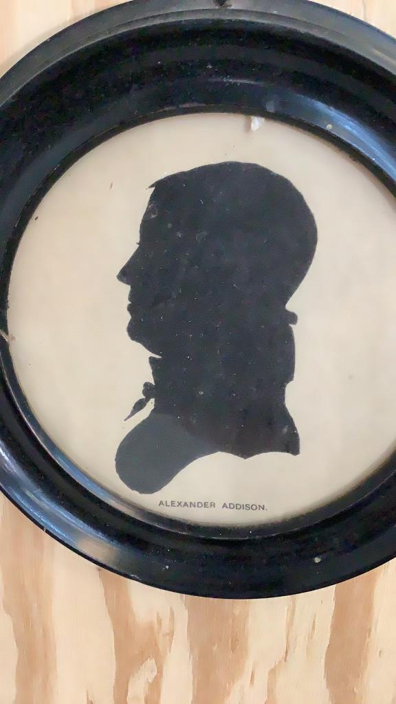 Single black profile of Alexander Addison, verso written note says framed in 1827Â…silhouette of Mannand Woman, each in a oval gilt frame ..unsigned Line Item # 8