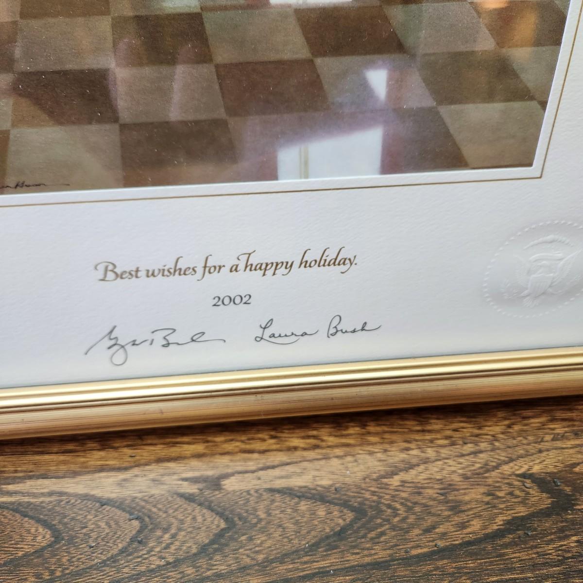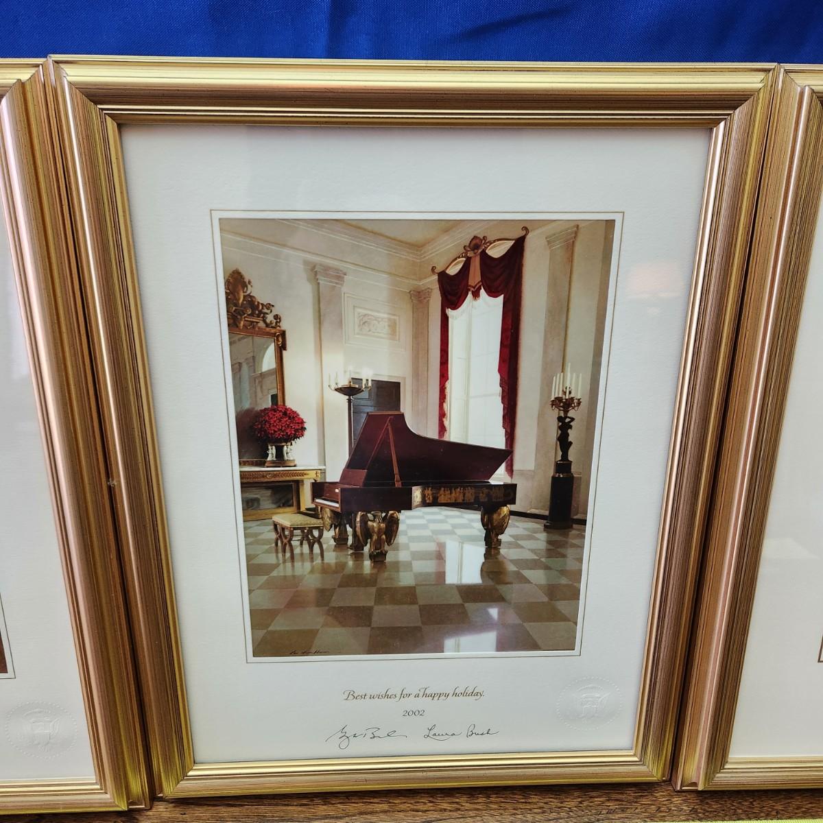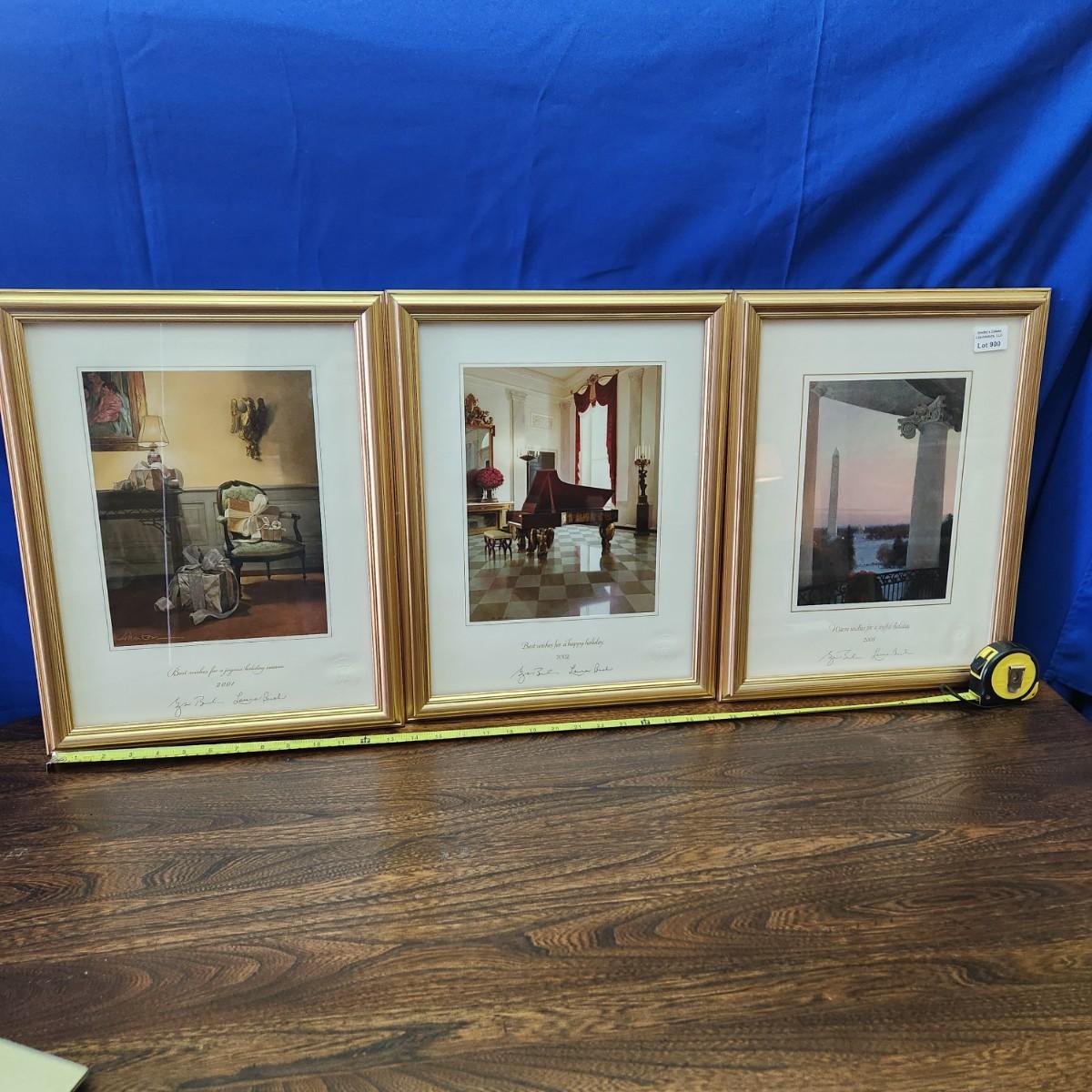 3 Framed White House Christmas Cards from Bush's 2001,2002,2008