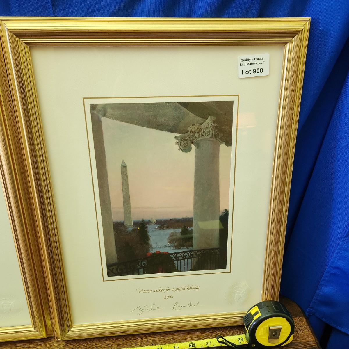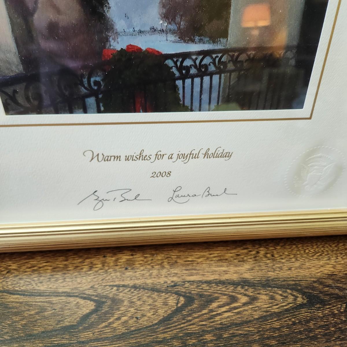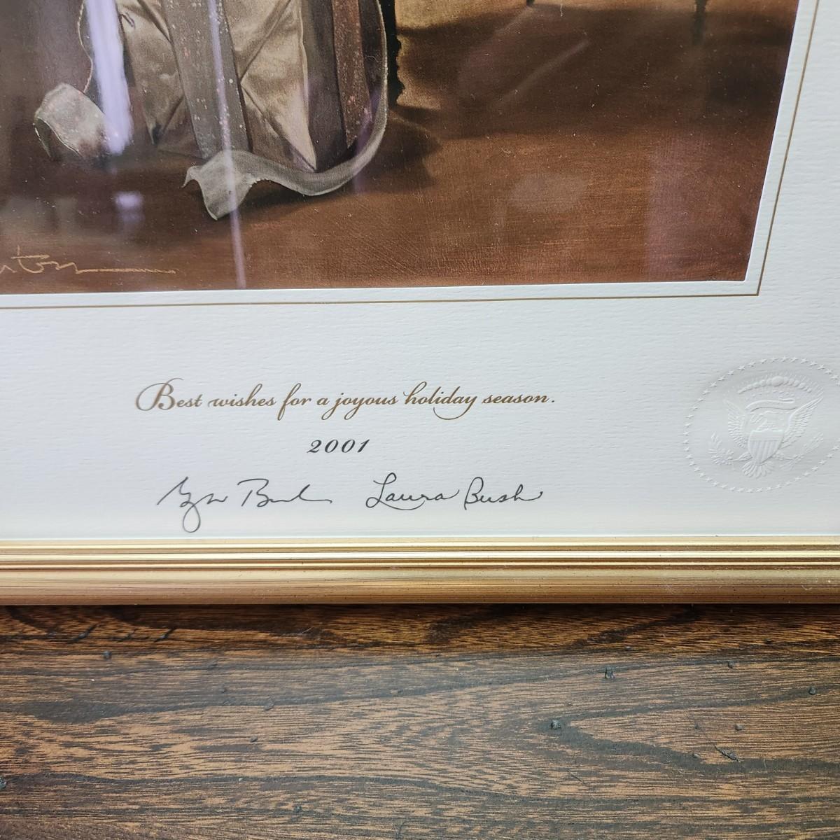 3 Framed White House Christmas Cards from Bush's 2001,2002,2008