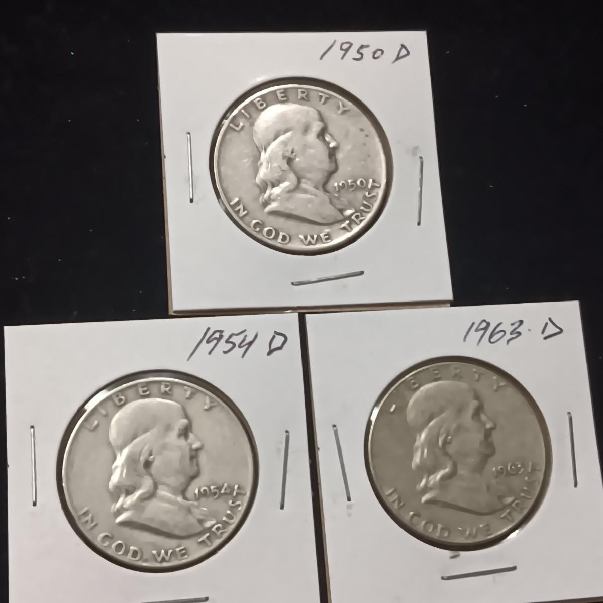 3 FRANKLIN SILVER HALF DOLLARS