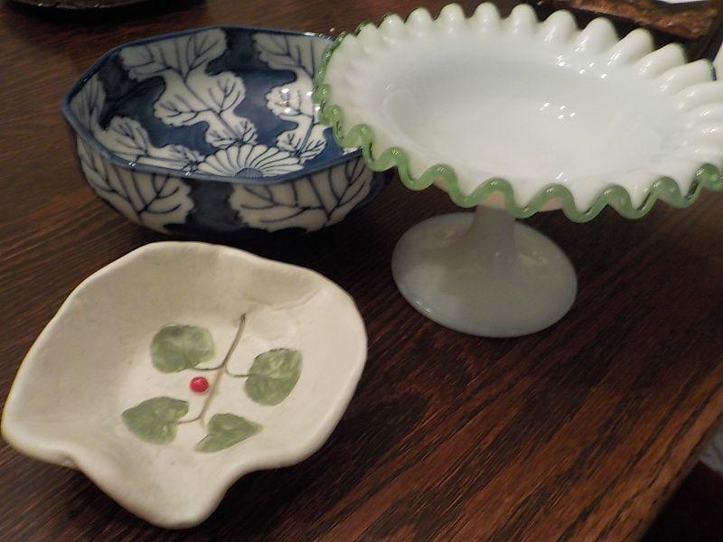 3 Glass design bowls and candy dish.