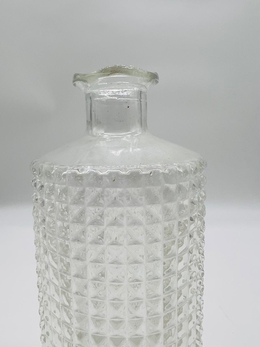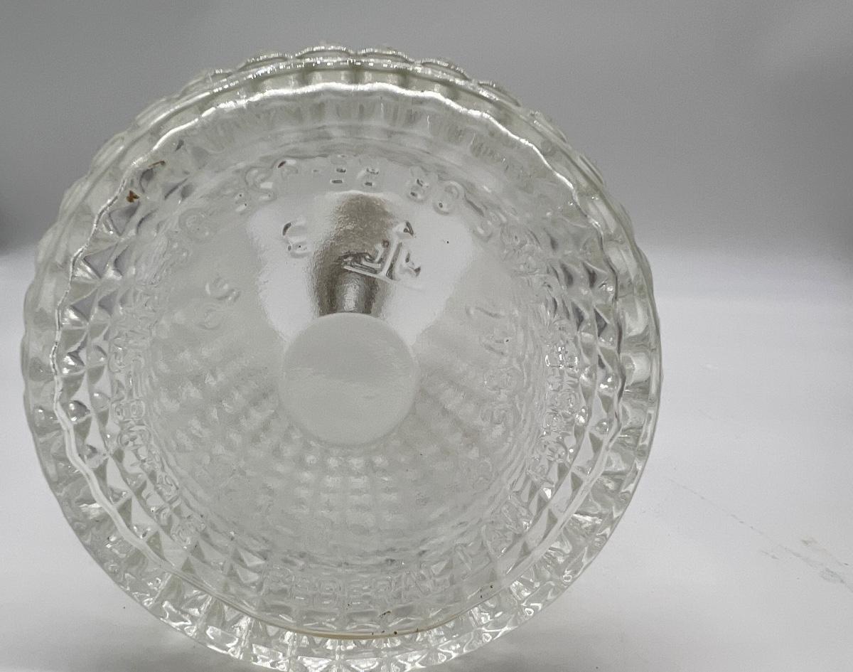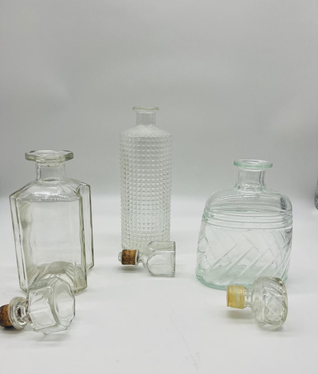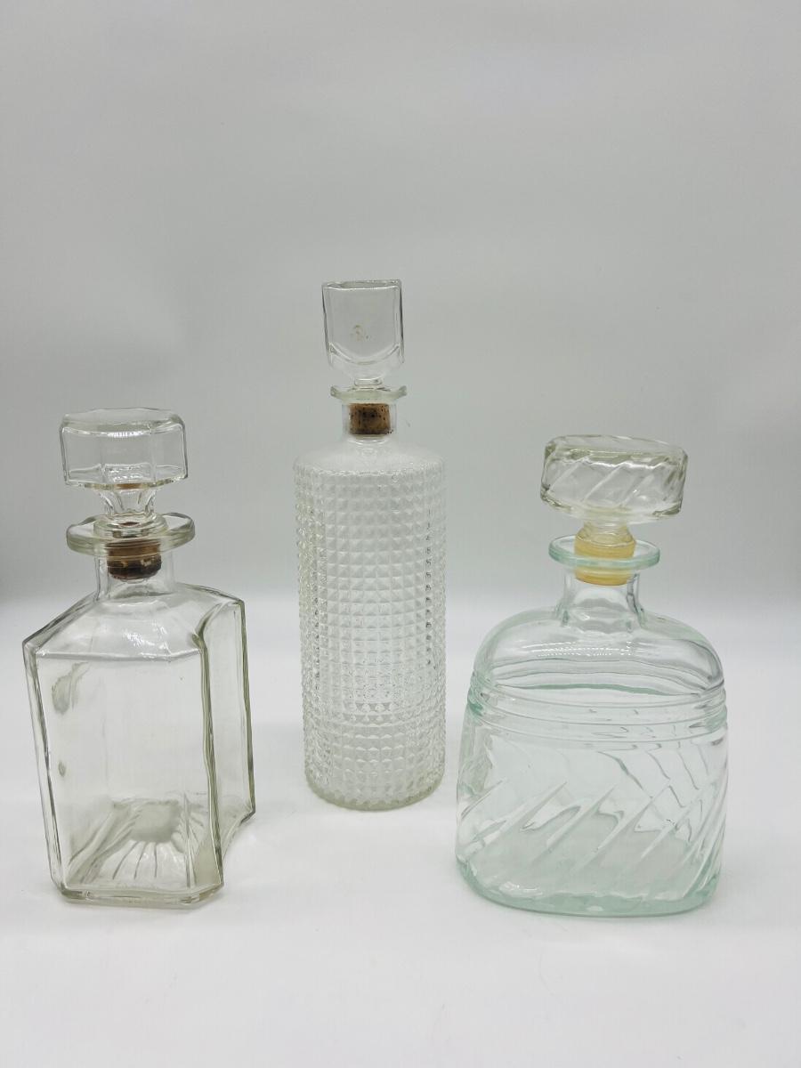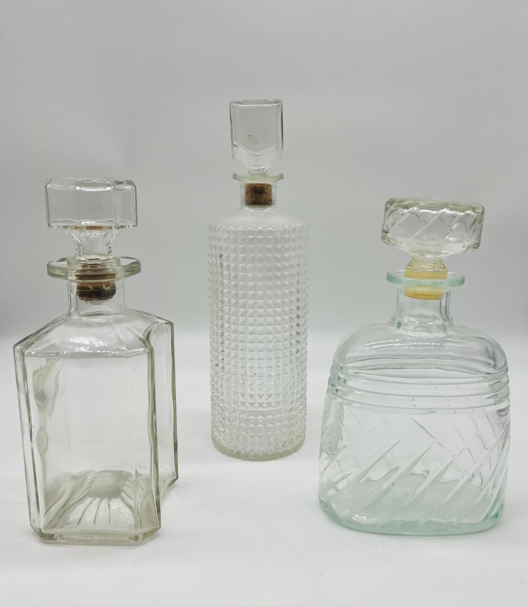 Thatcher glass diamond cut measures 12 inches tall. Other two Measure approximately 9 inches tall.