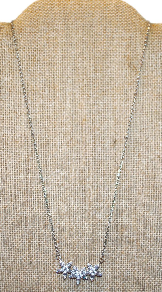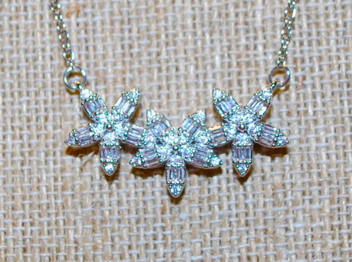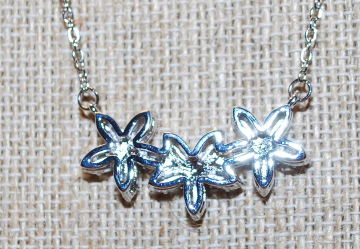 3 Glittery Attached Stars with Clear Stones PENDANT (2¼" x ½") on a Silver Tone Necklace Chain 18" L