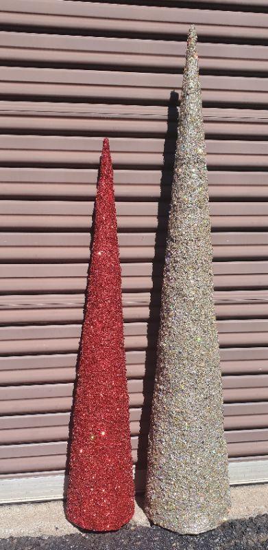 Three Tall Glittery Christmas Tree Cones (Big: 48" Smaller: 38.5")