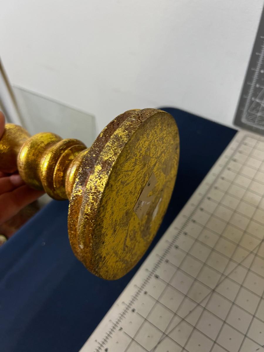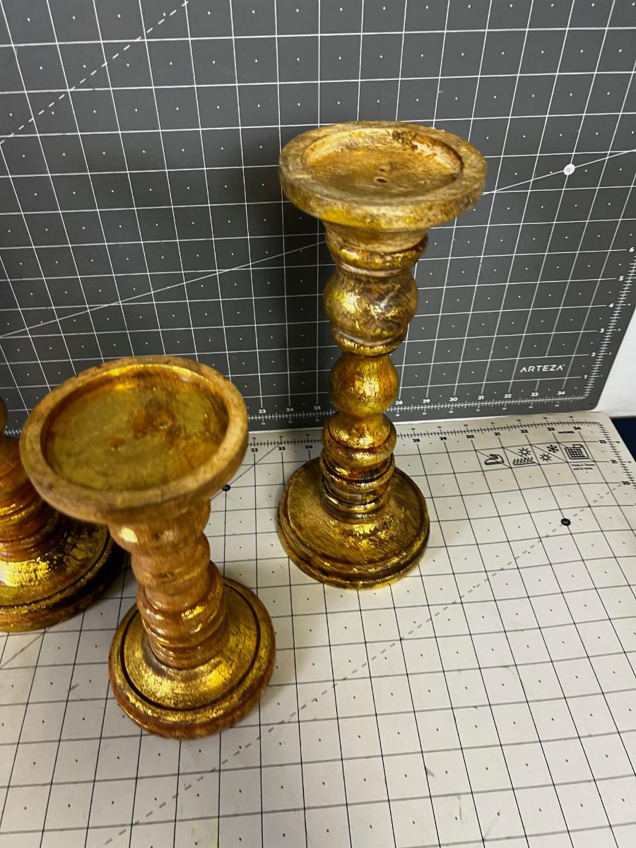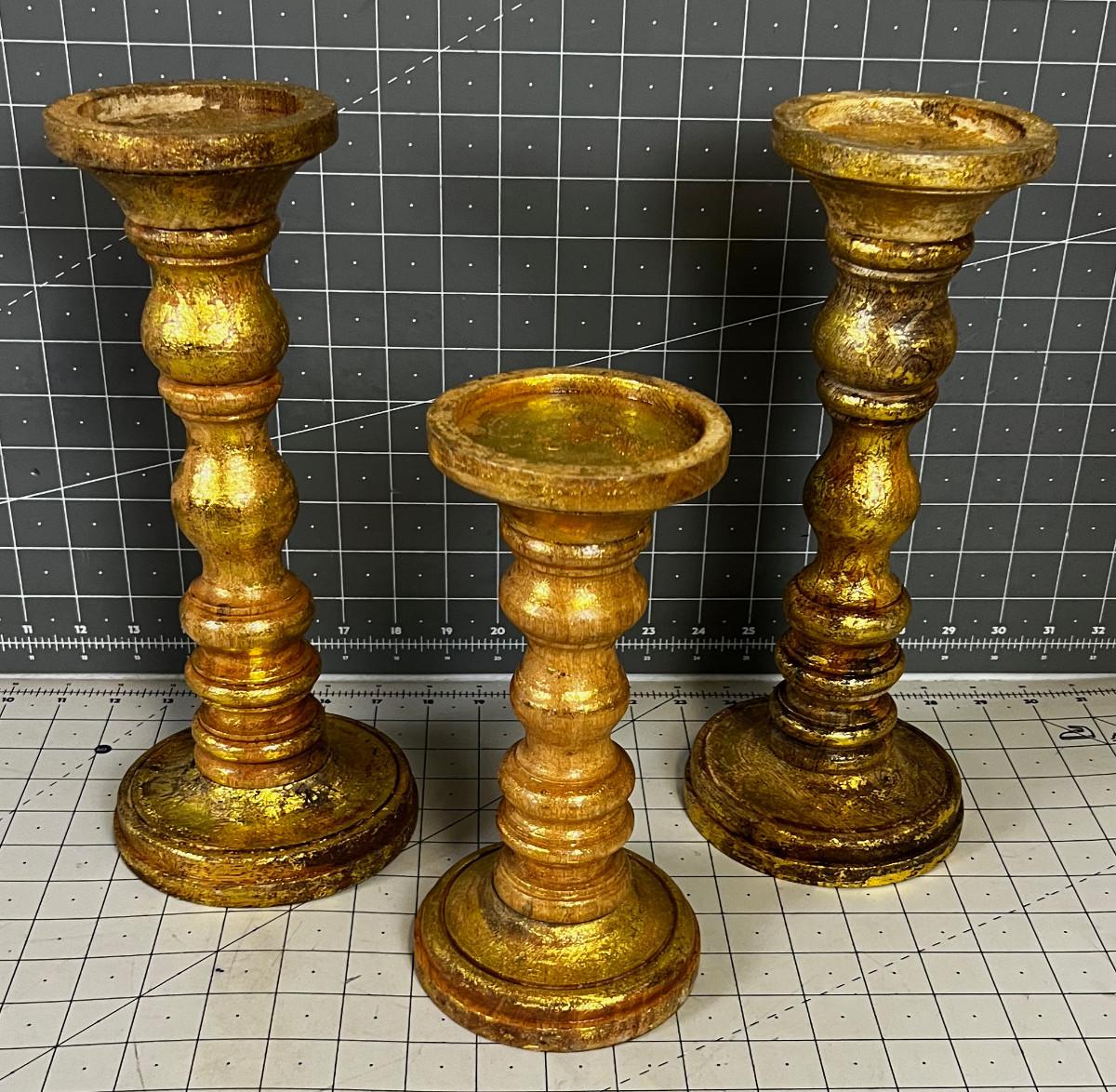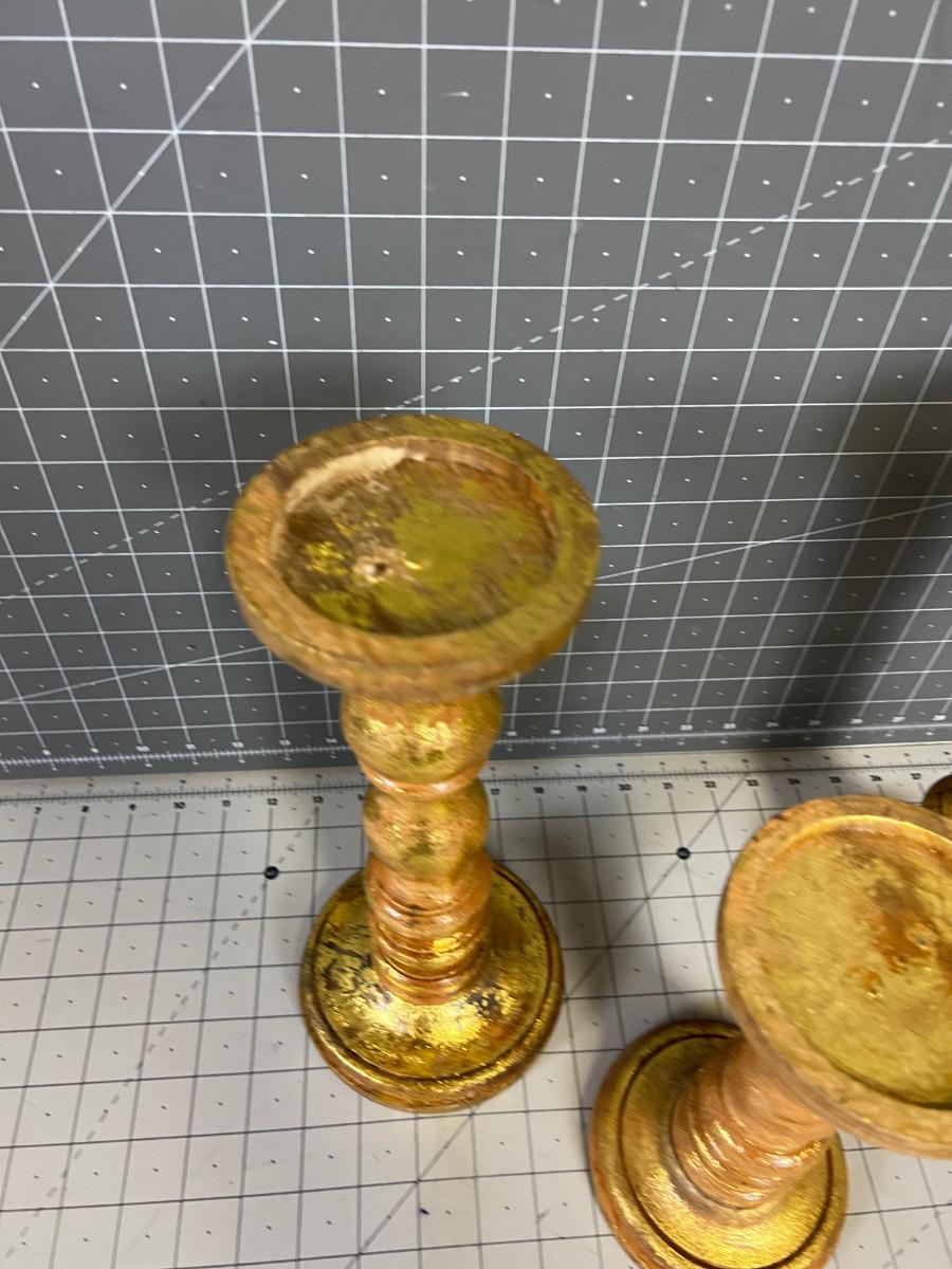3 Gold Candle Sticks, New Turned Wood
