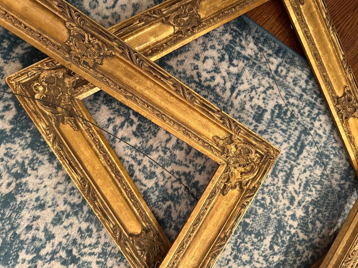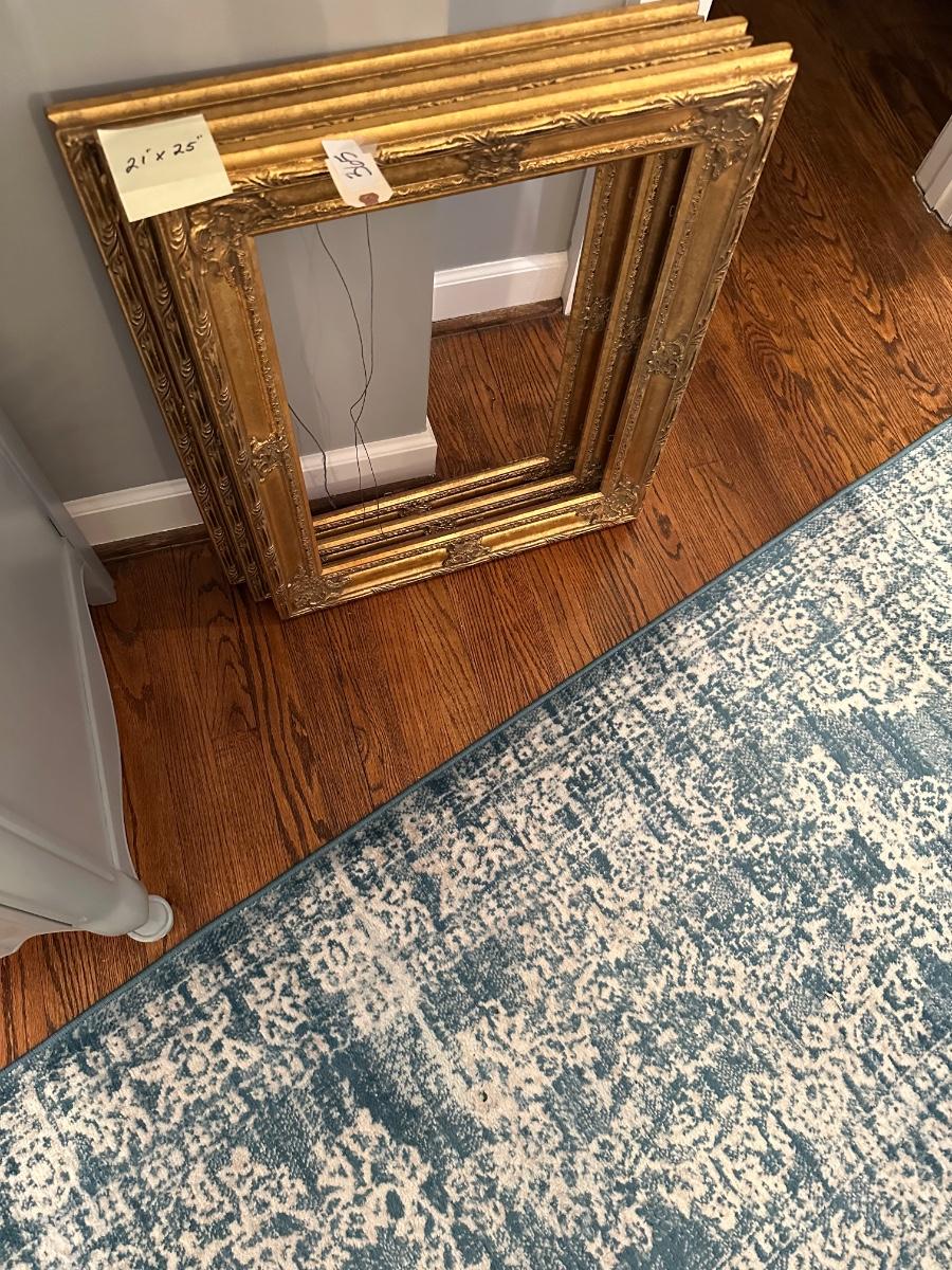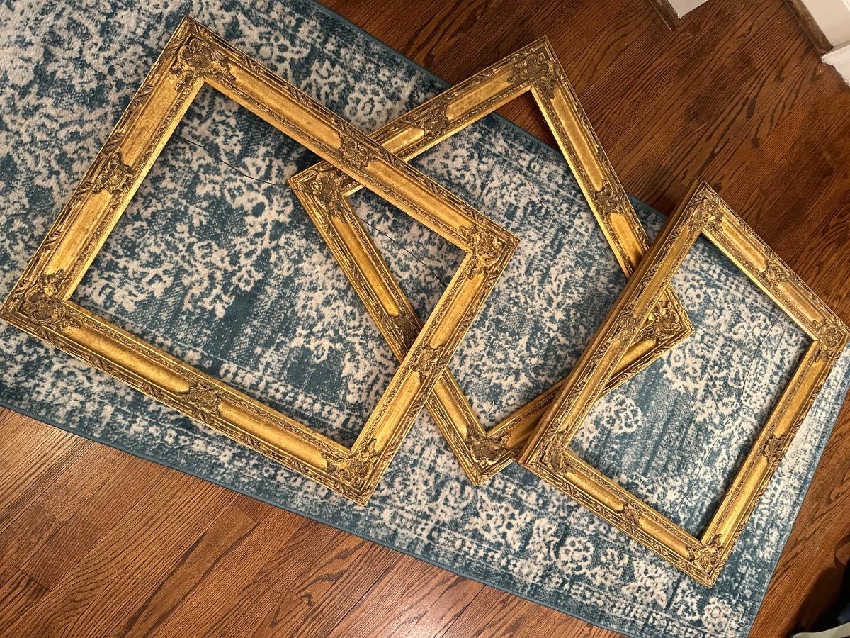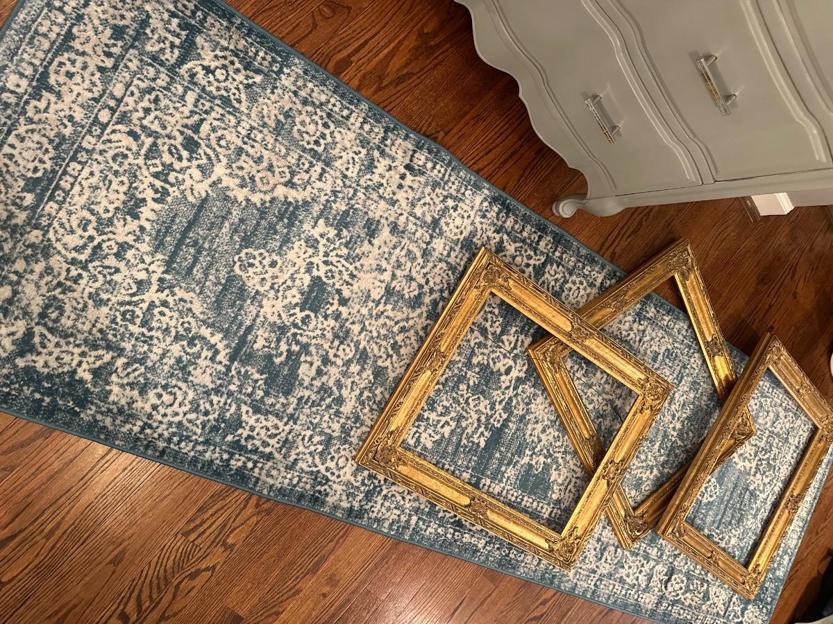 3 GOLD FRAMES, BLUE RUG AS PICTURED