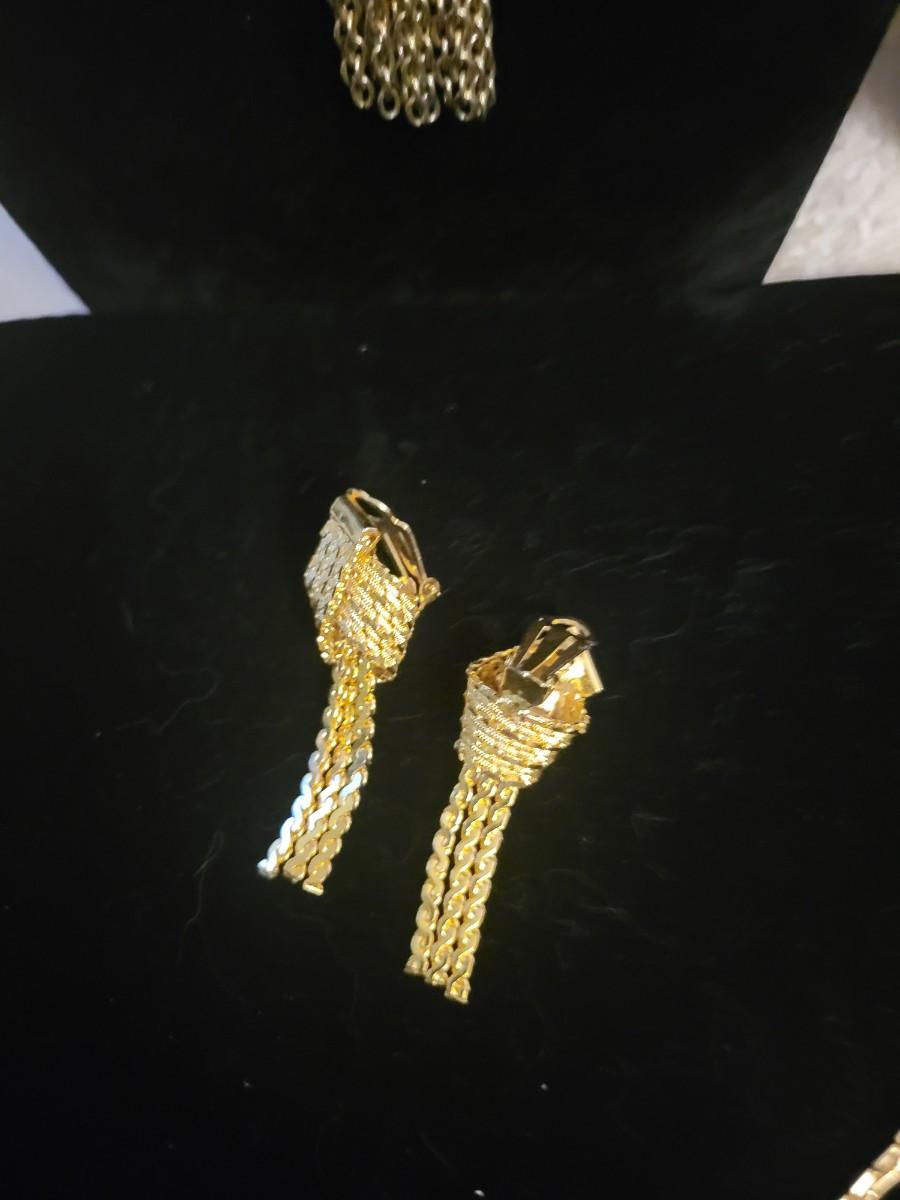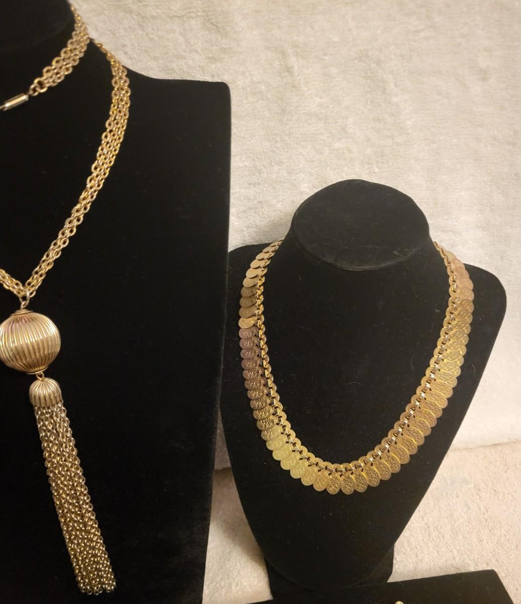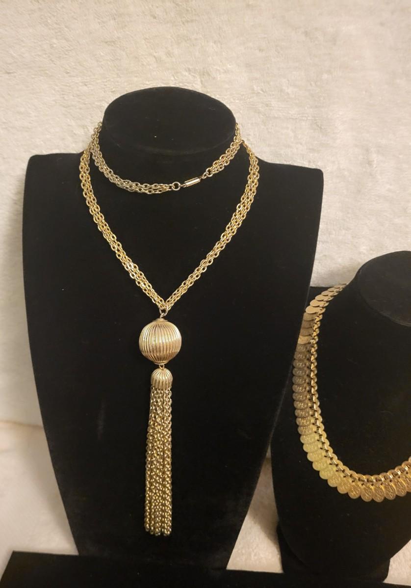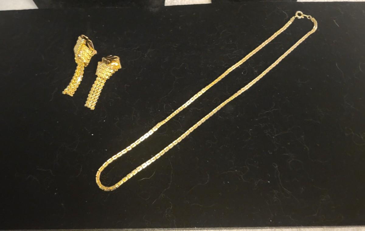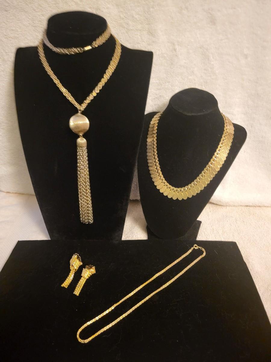 3 GOLD-TONE NECKLACES AND A PAIR OF CLIP ON EARRINGS
