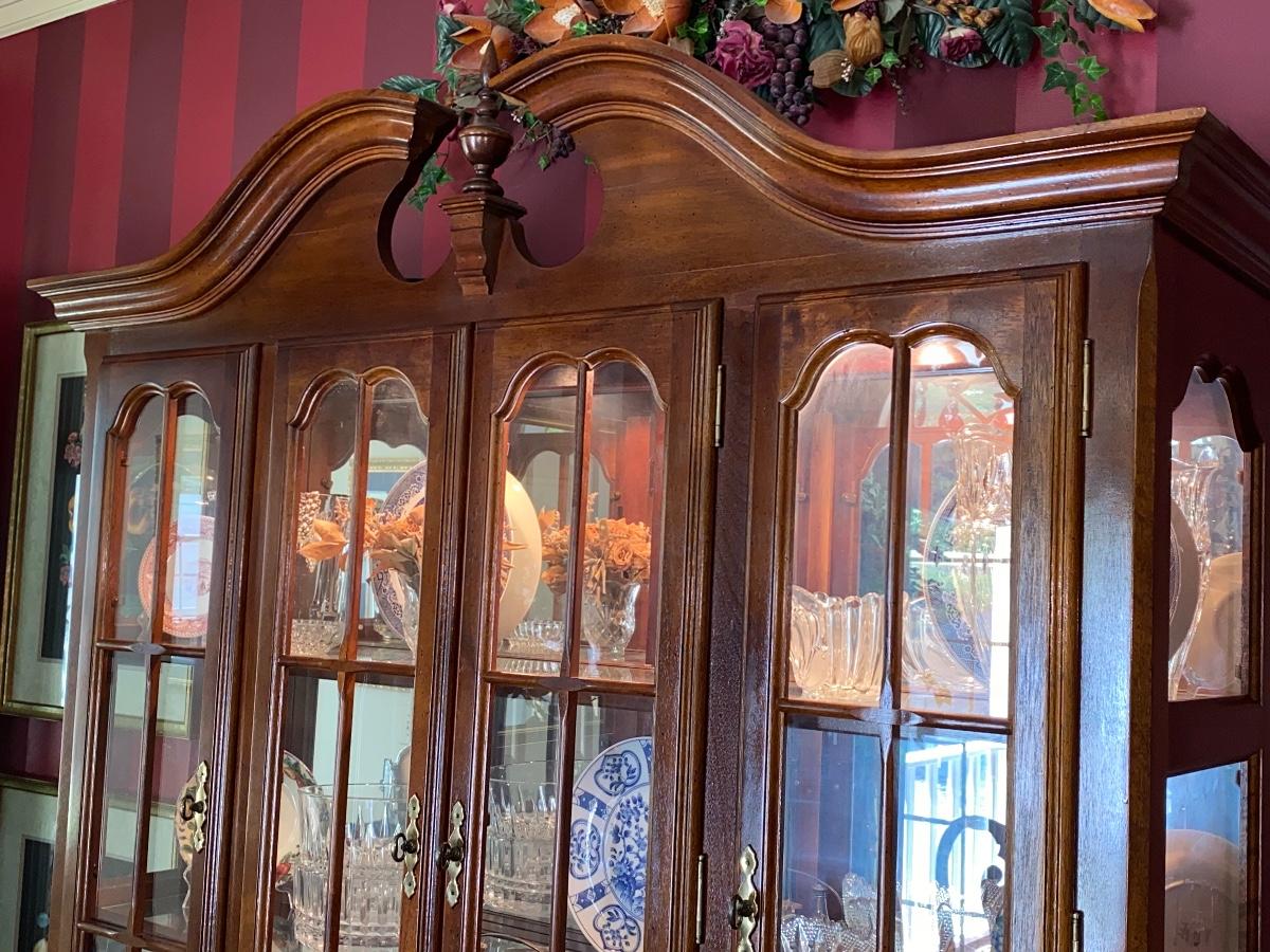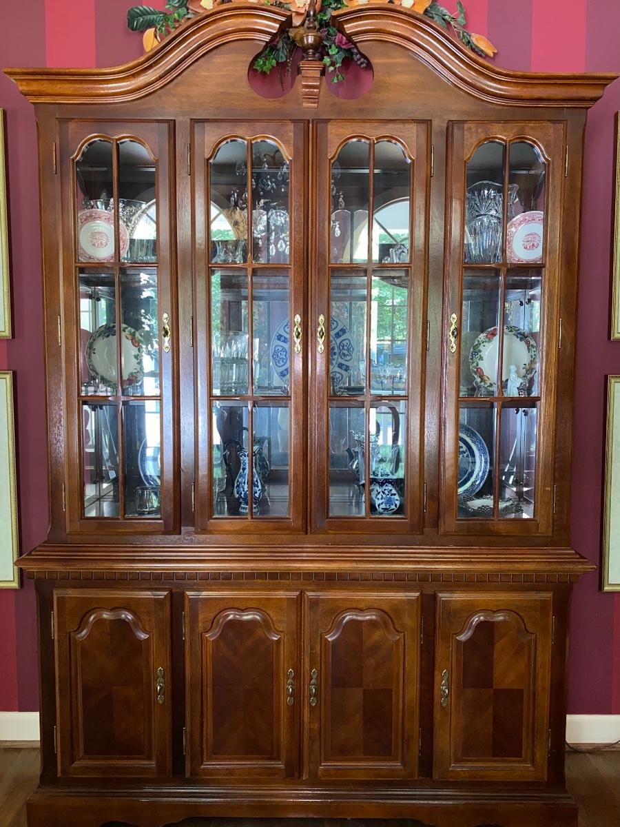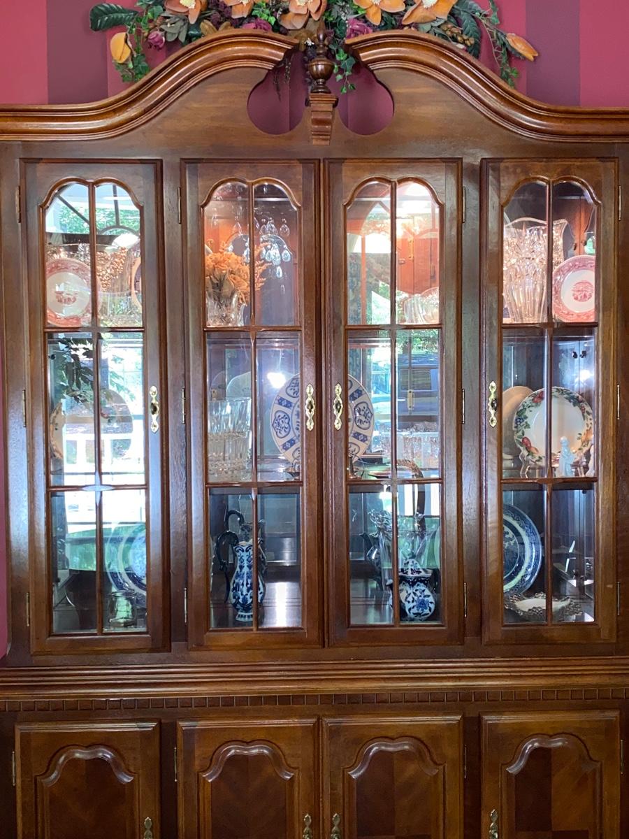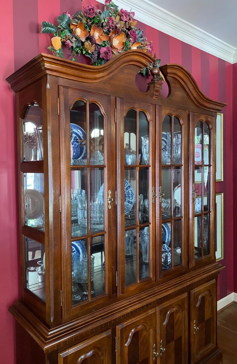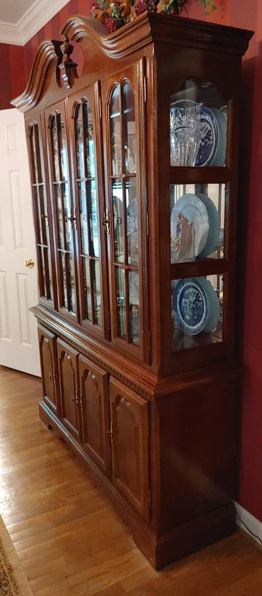 Gorgeous mahogany china cabinet great visibility with glass on the sides & lighting.