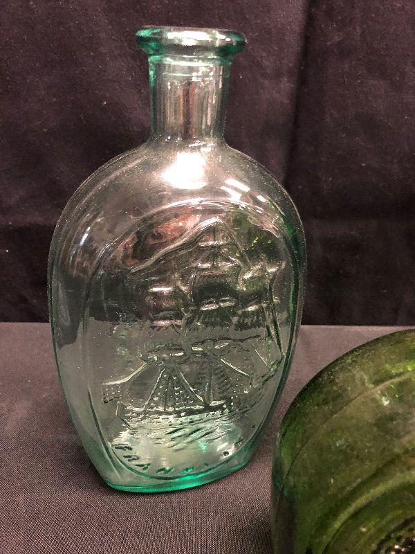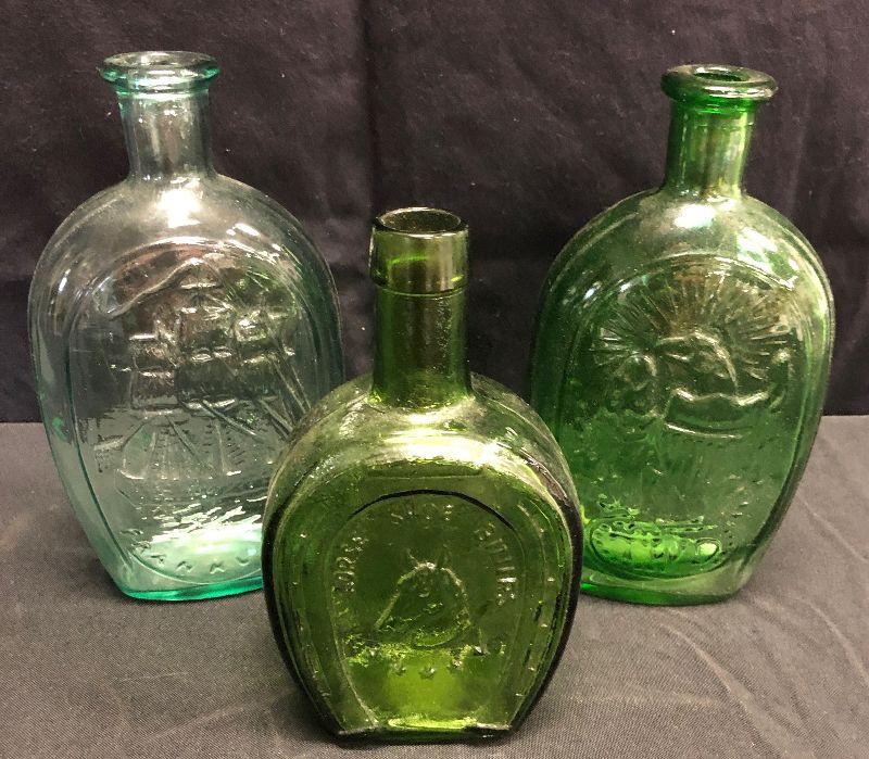3 Green Antique Reproduction Bottles