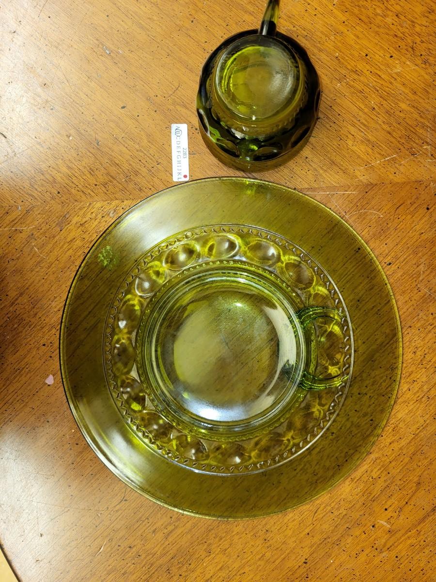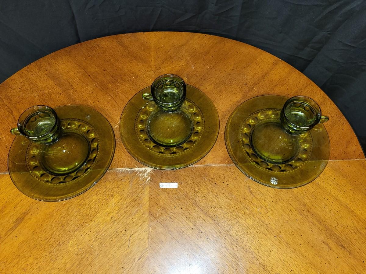 kitchen:3 Green Cup and Saucer;