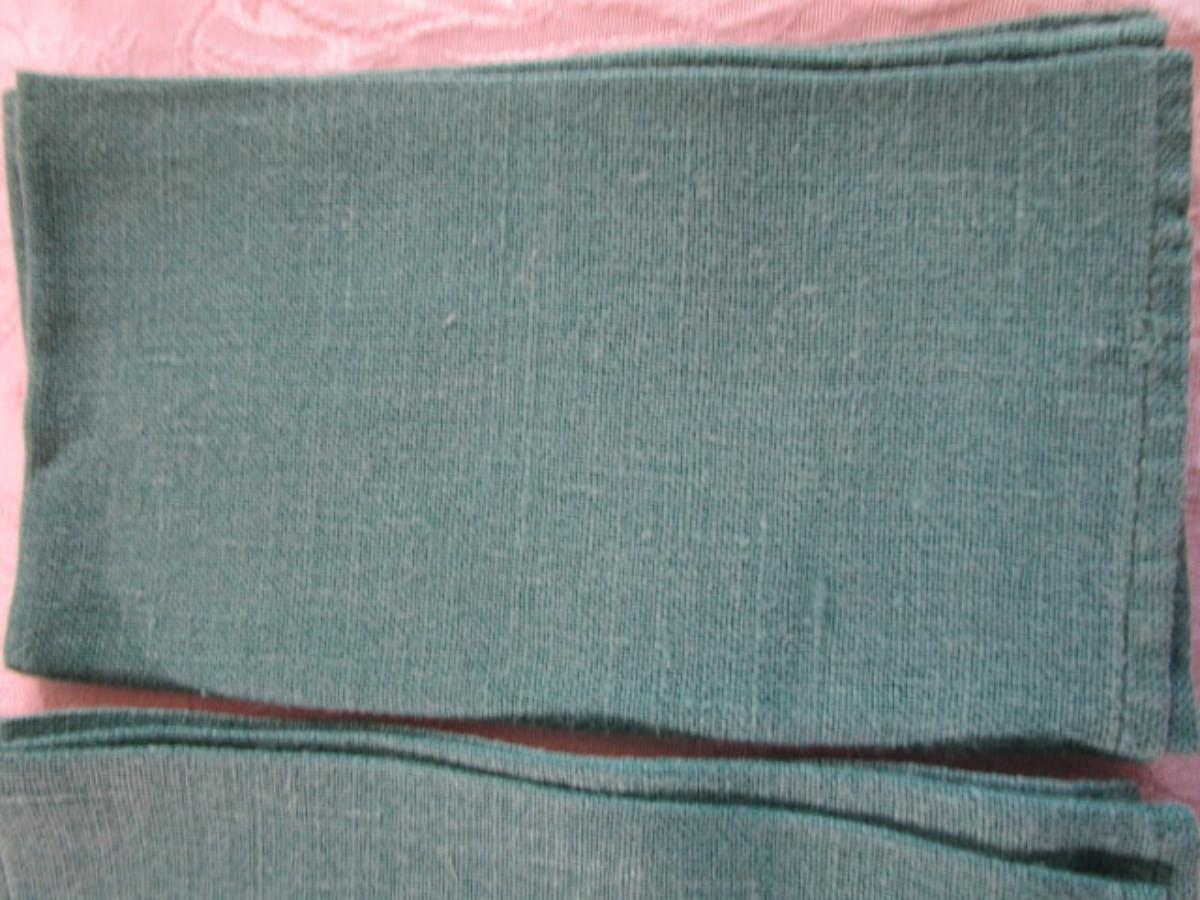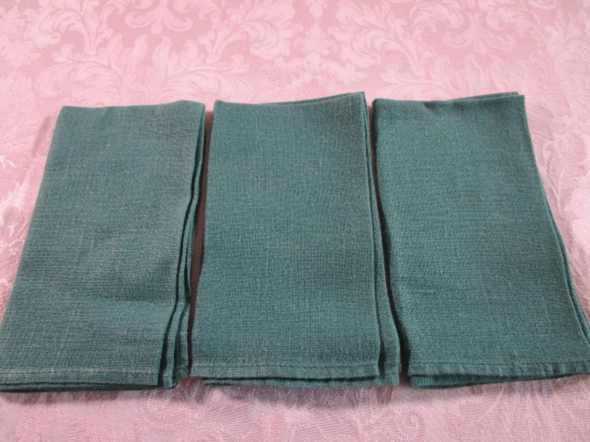 3 green linen napkins