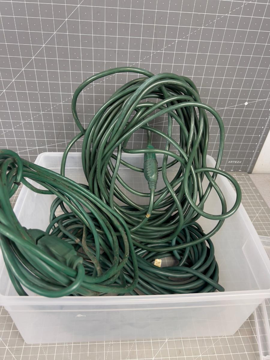 a Couple of 50' and a 25' Good Usable Condition. Come with a keepsake tub to store your holiday cords in.
