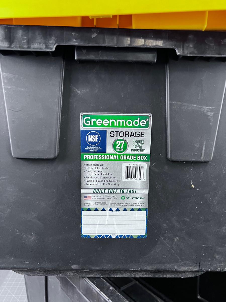 3 GREEN MADE 27Gallon Tote with Yellow Lids