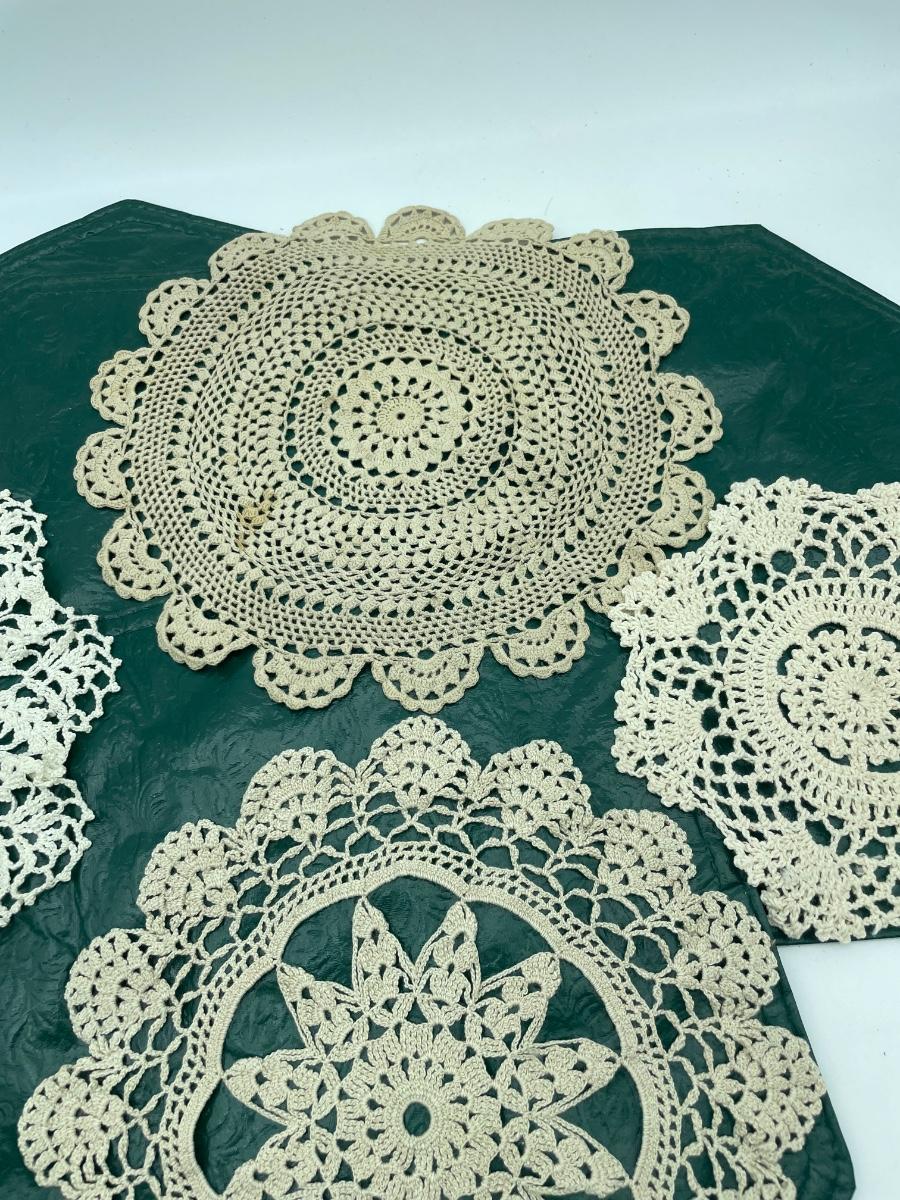 3 green table Matt’s and doily asst