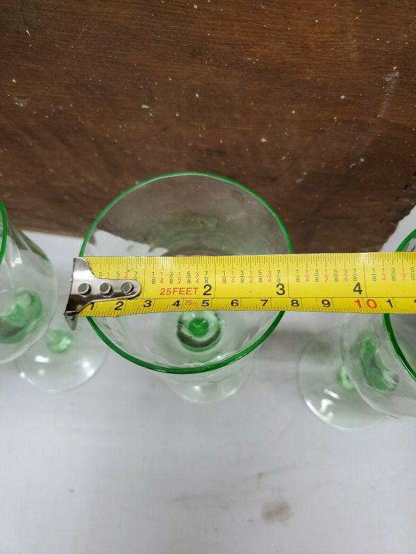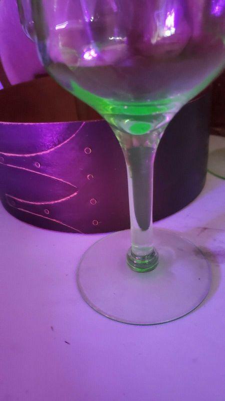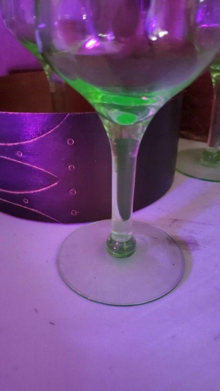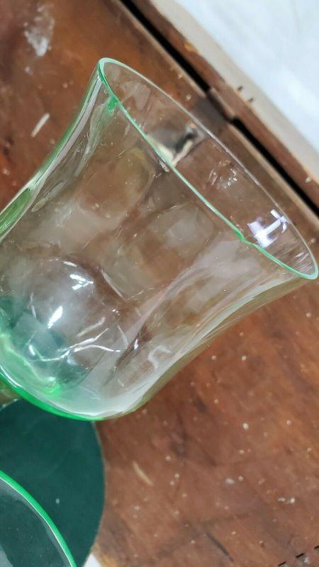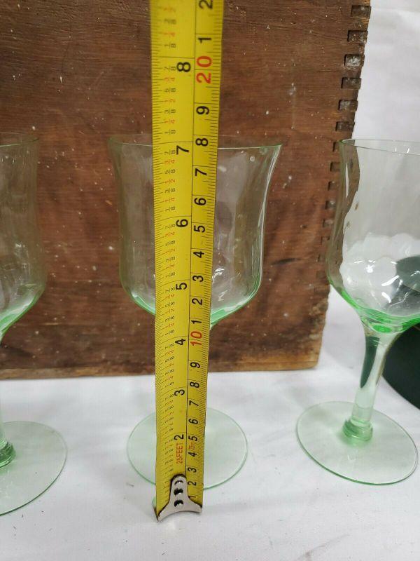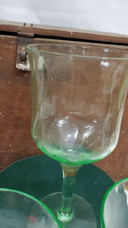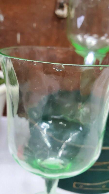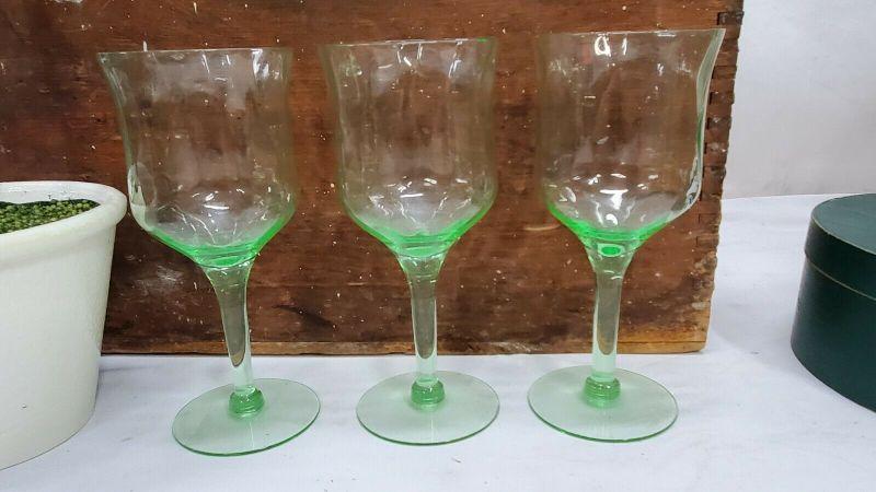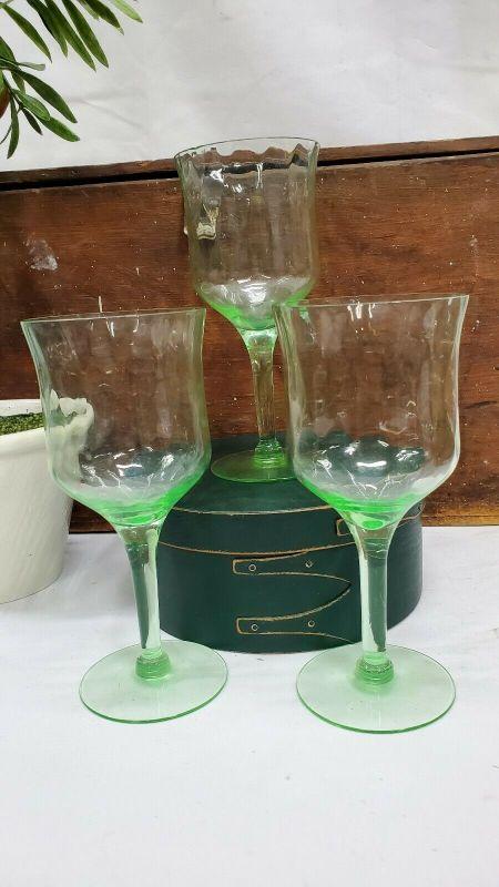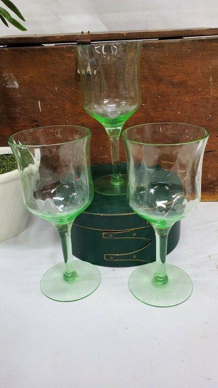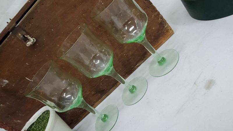 3 Green Uranium Vaseline Depression Glasses/Goblets/Stemware, 2 Small Chips