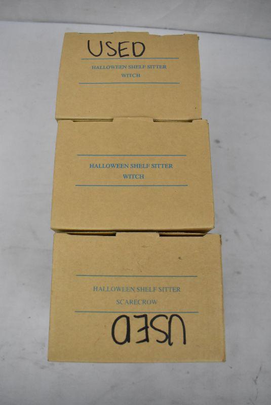 3 Halloween Witches & Scarecrow Shelf Sitter Decor: New Condition Original Boxes
