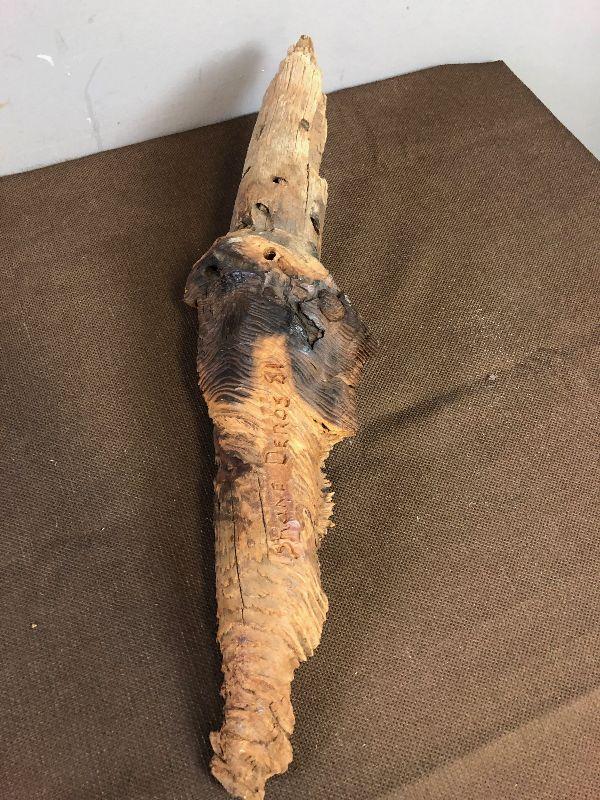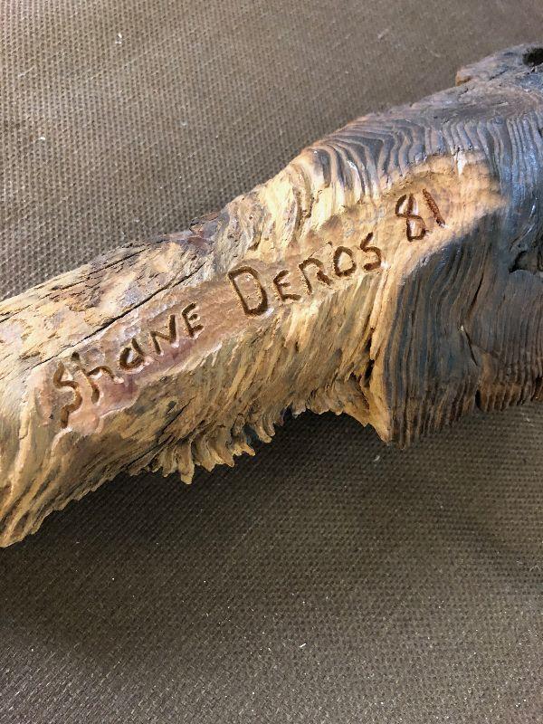 hand carved by Shane Deros '81, unique piece of wood 21" long 6" at its widest and 4" deep
