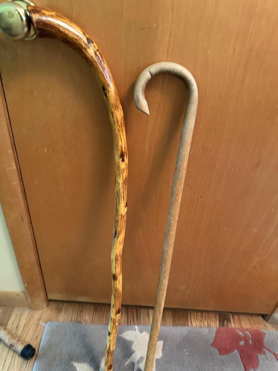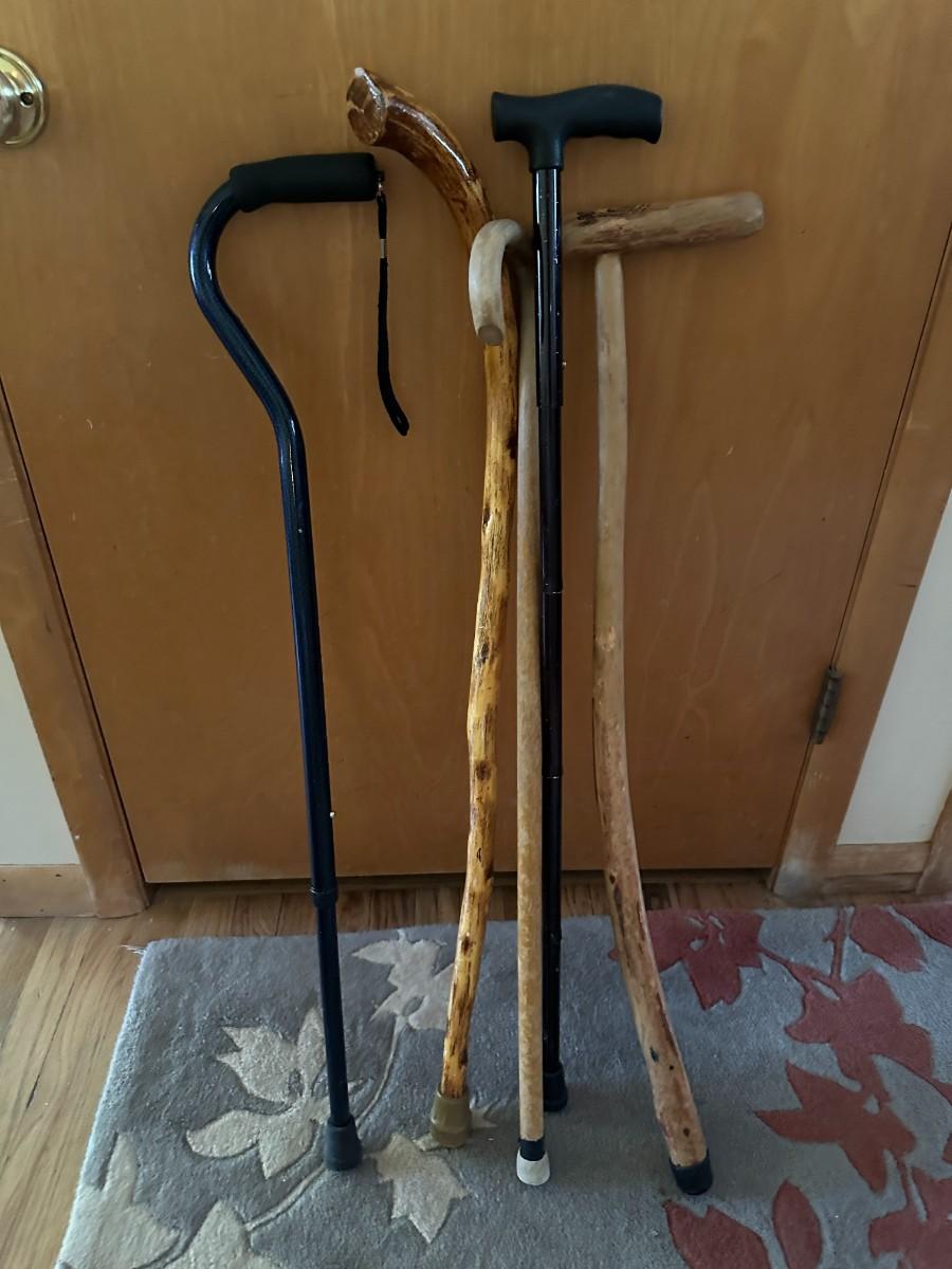 3 Hand Carved Wood Canes + 2 Medical Canes SEE POW MIA CANE