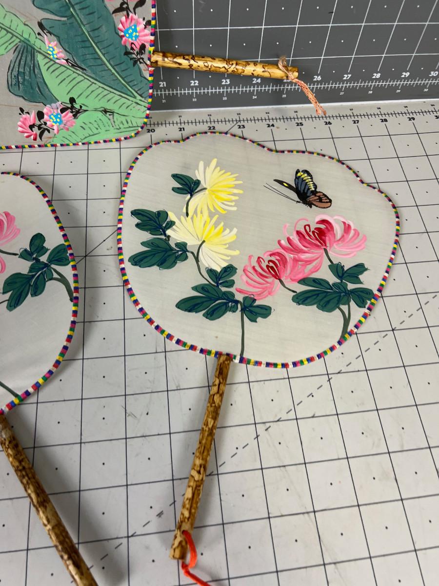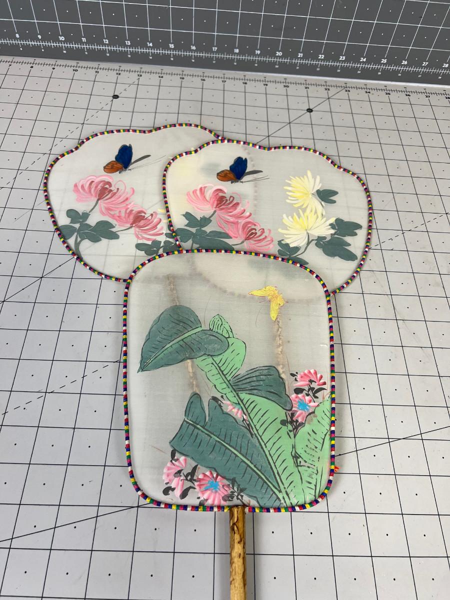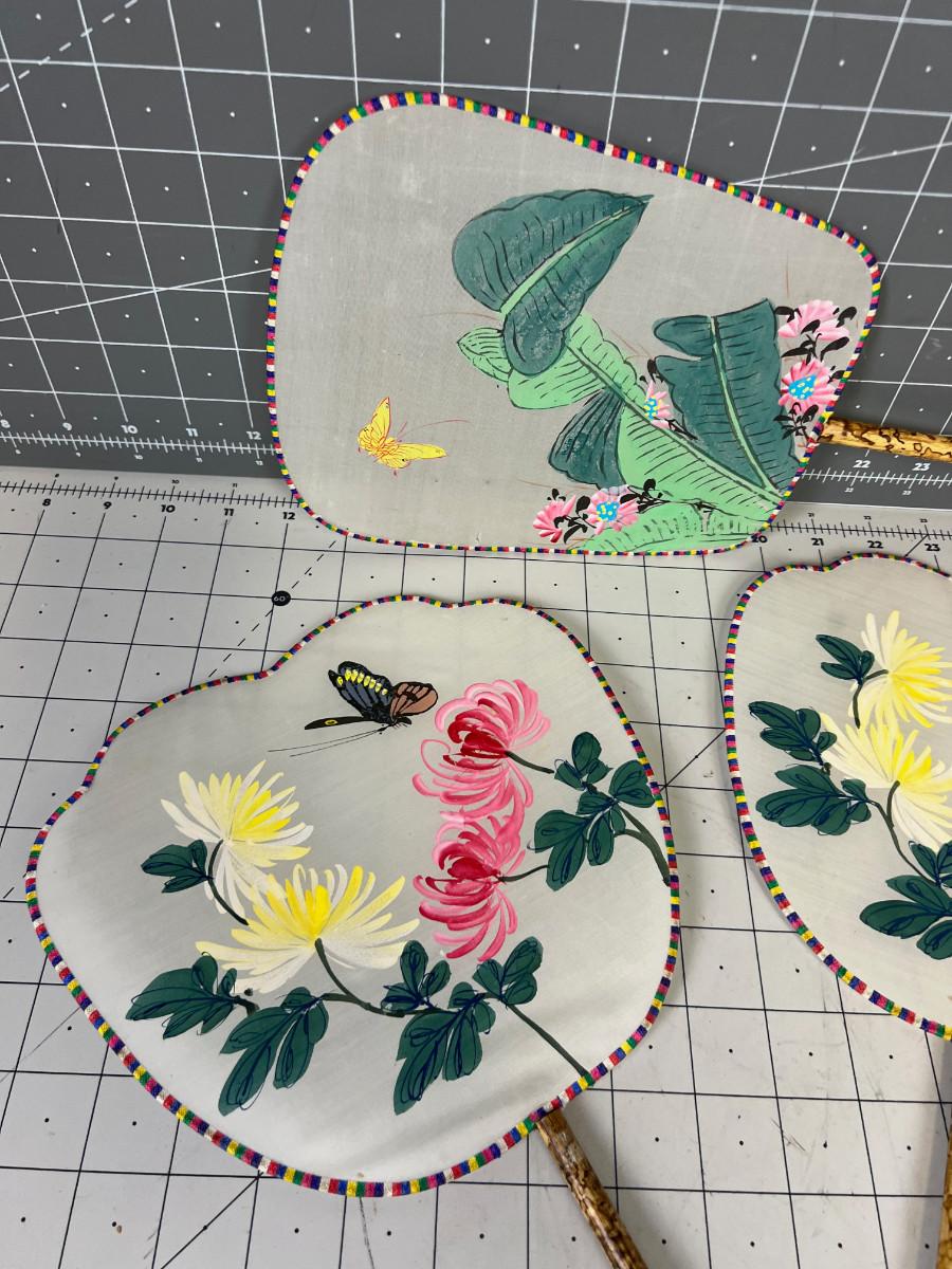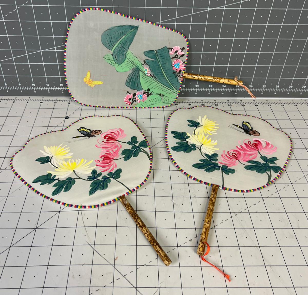3 Hand Painted Silk Fans with Bamboo Handle (the Real Thing)