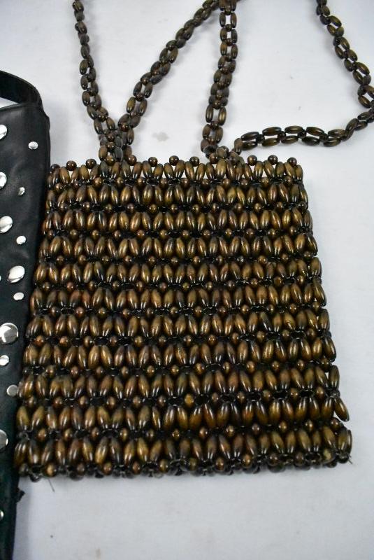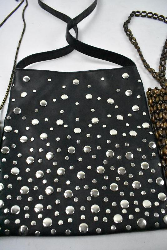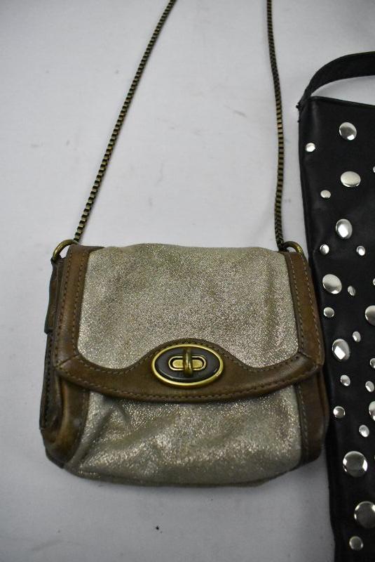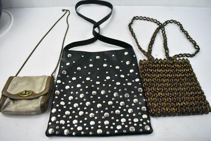 3 Handbags: Fossil Brown/Gold, Fashion Express Black & Silver, Giannini Brown Beaded