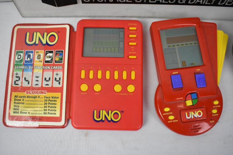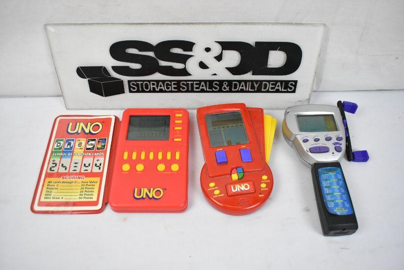 3 Handheld Electronic Games: (2) Uno & 1 Fishing