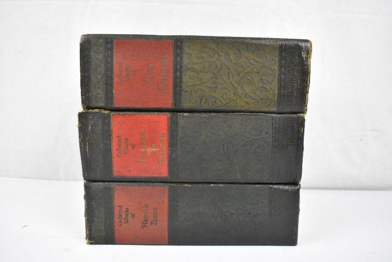 3 Hardcover Books (Black & Red) Tolstoi, Balzar, & Ibsen. Vintage 1925 & 1928
