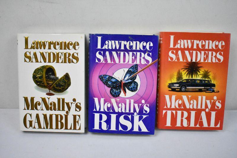 3 Hardcover Books by Lawrence Sanders: McNally's Gamble/Risk/Trial