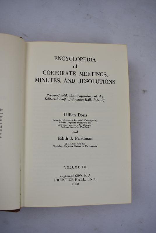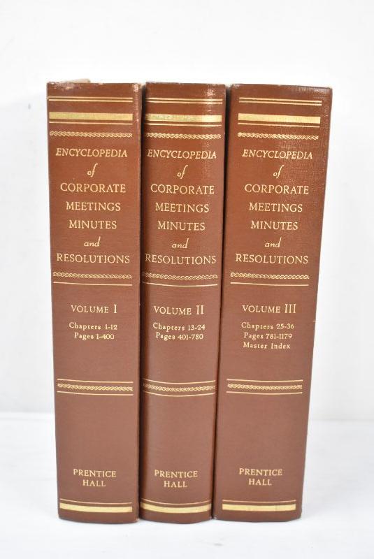 3 Hardcover Books: Encyclopedia of Corporate Meetings Minutes and Resolutions, Volume I, II, III Vintage 1958