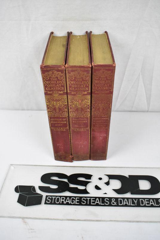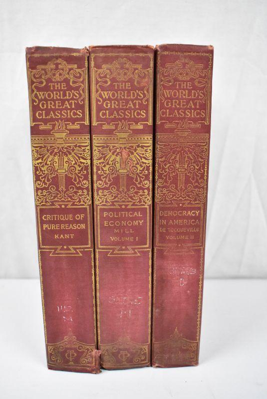 3 Hardcover Books "The World's Great Classics: (Red) Reason Kant, Political Economy, & Democracy in America. Antique 1899