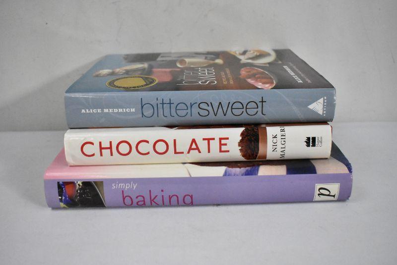 3 Hardcover Cookbooks: Bittersweet, Chocolate, Simply Baking