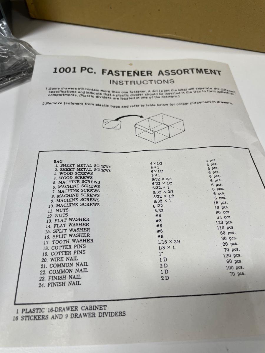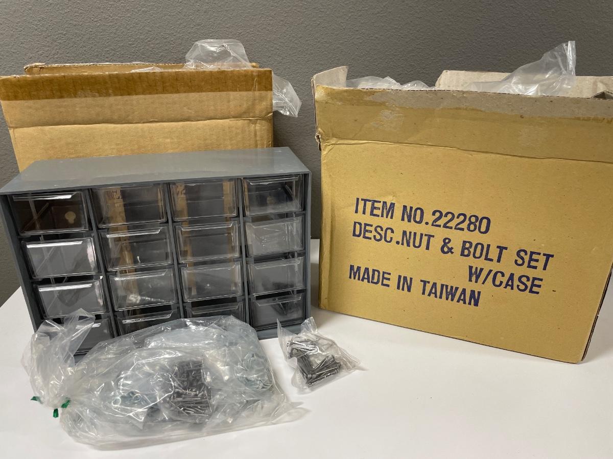 3 Nuts & bolts organizer. Includes all the nuts and bolts to fill each drawer. There are approximately 9 drawers per organizer.