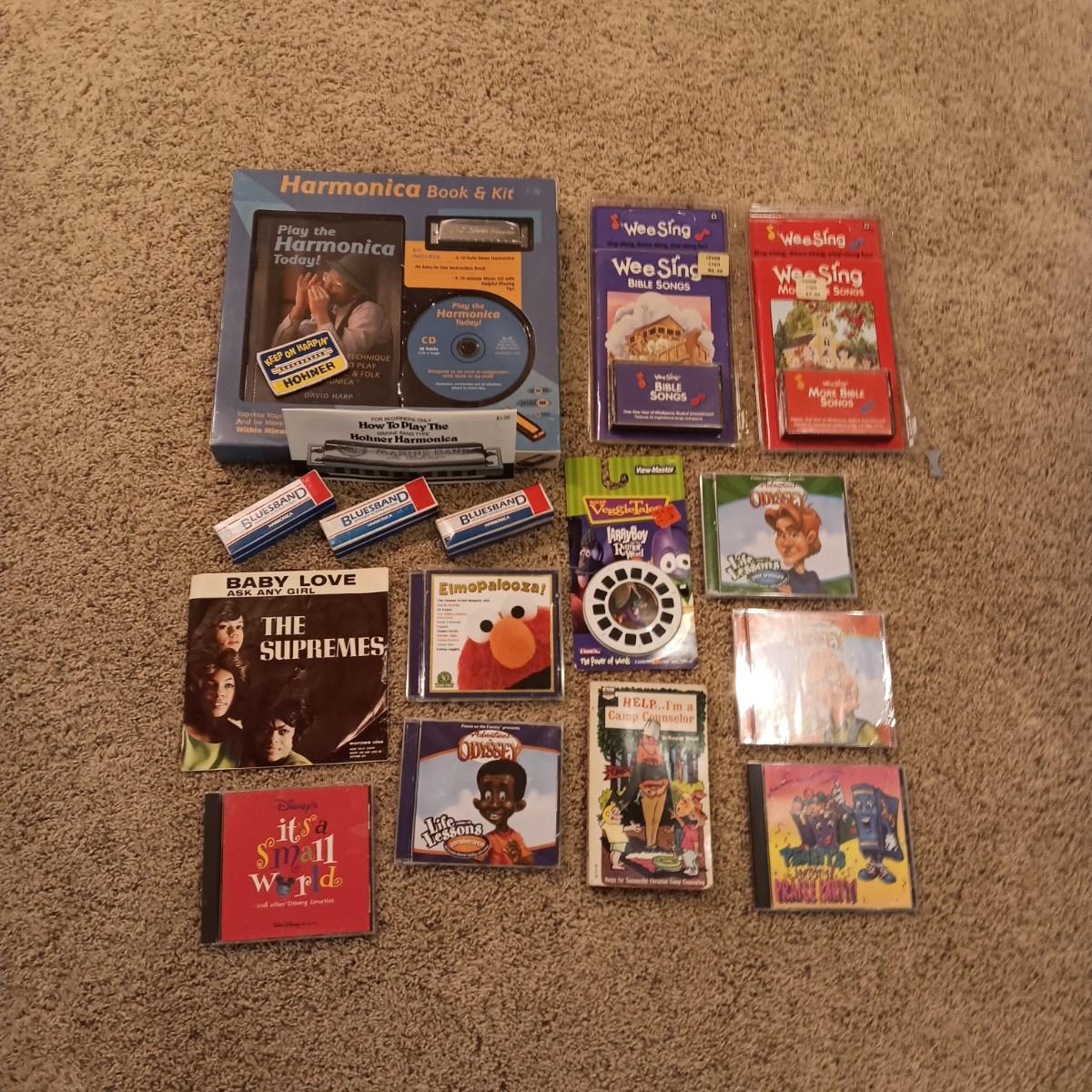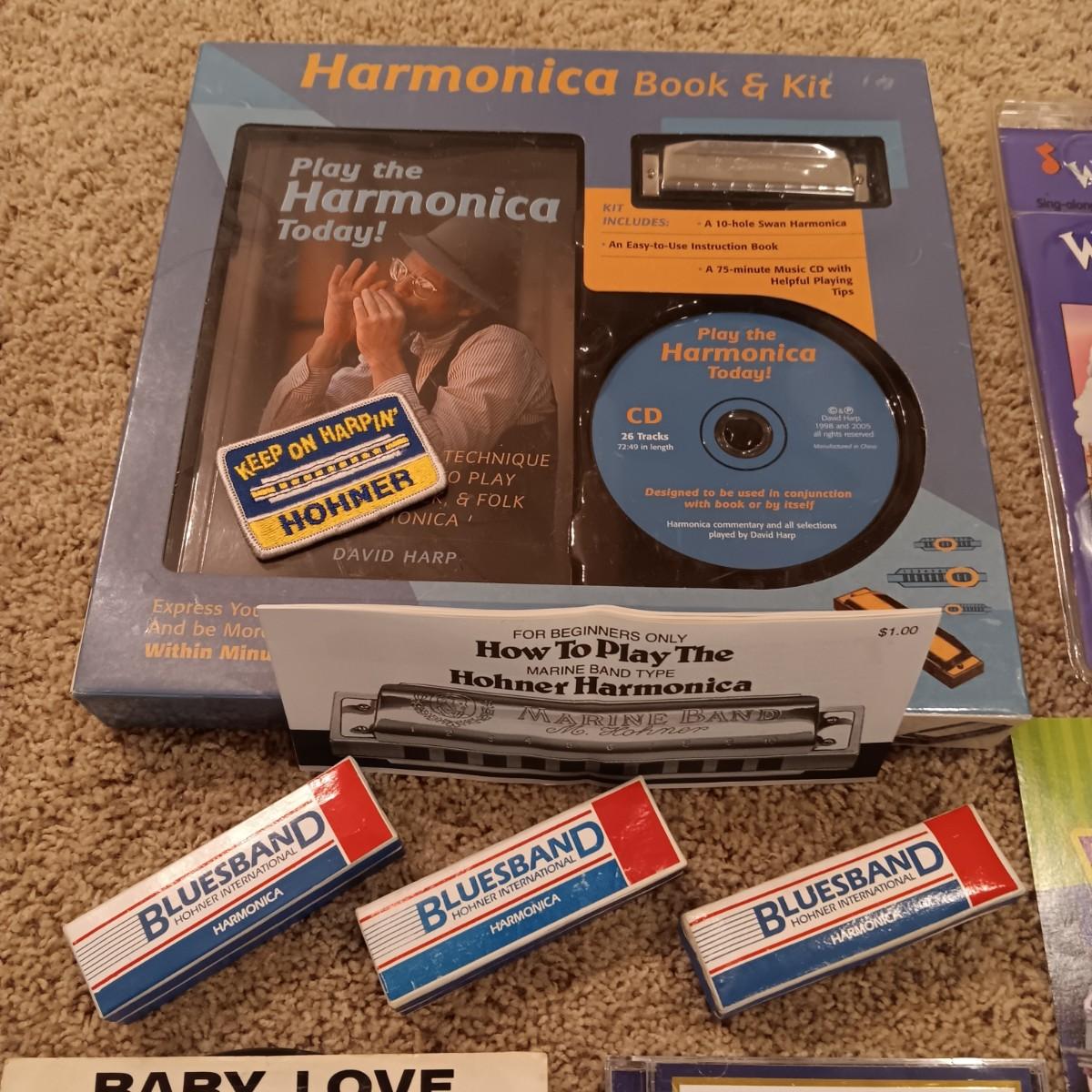 3 HARMONICAS. INSTRUCTION CD/BOOK & CHILDREN'S CD'S AND CASSETTES