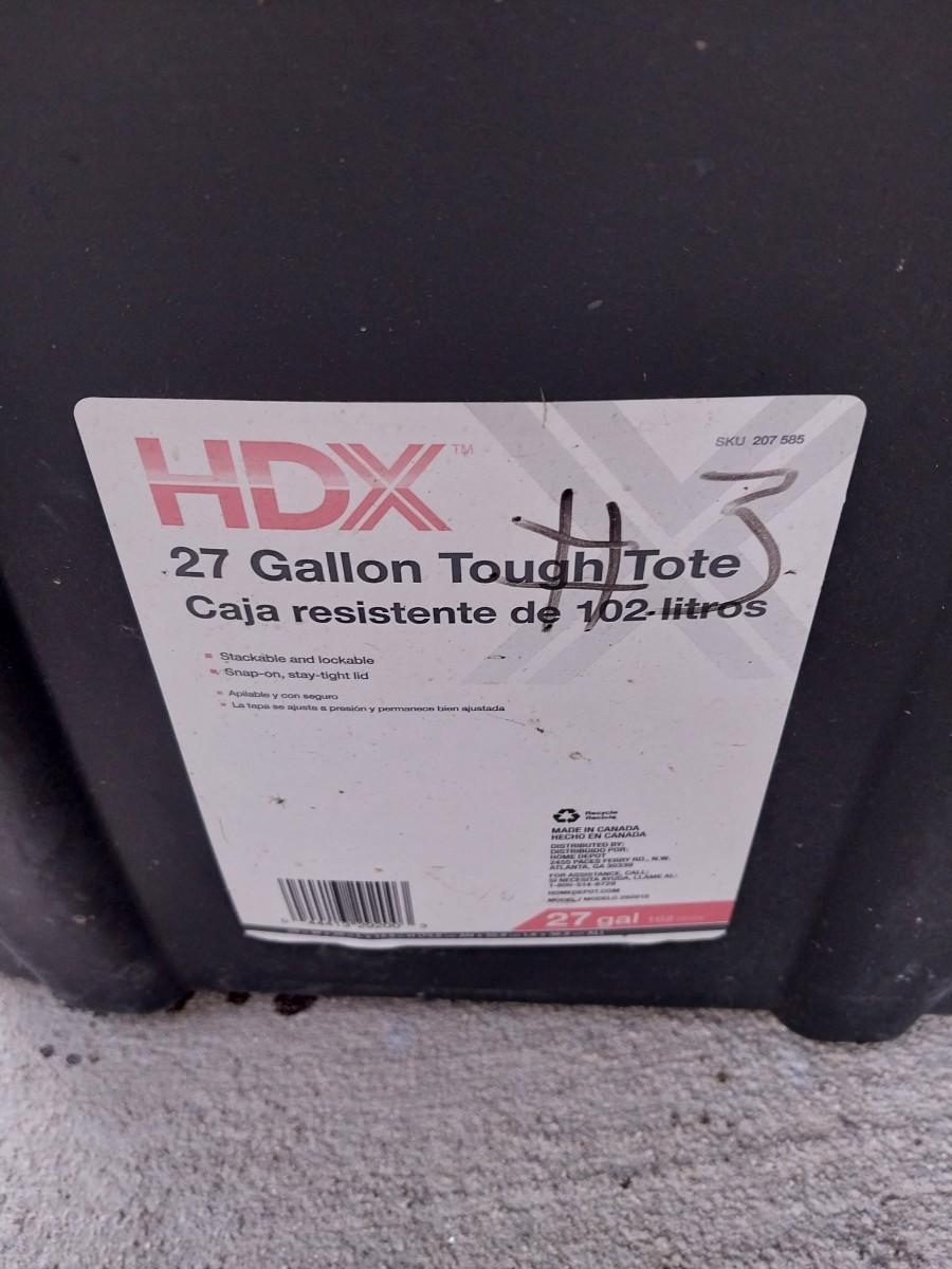 3 HDX 27 GALLON TOUGH TOTES (2)