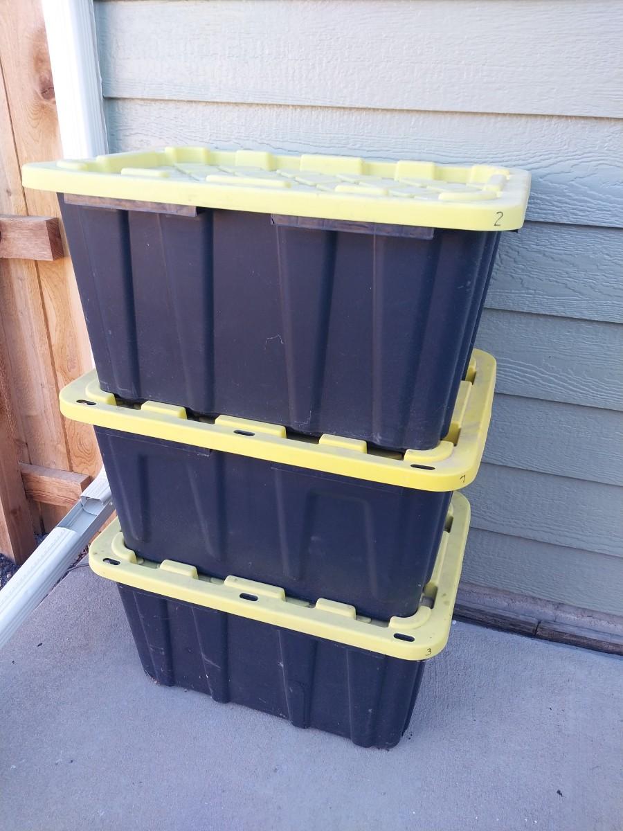 3 HDX 27 GALLON TOUGH TOTES (3)