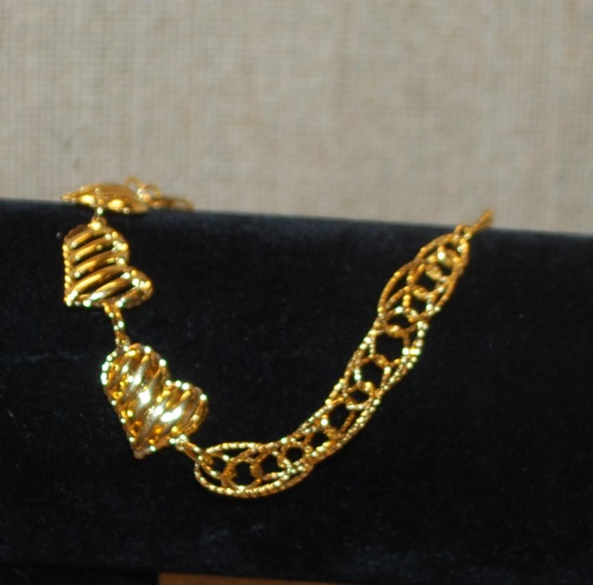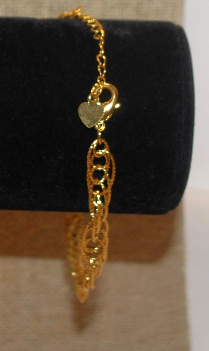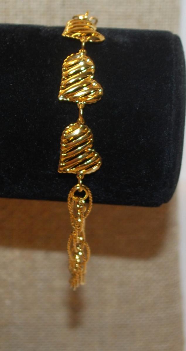 3 HEARTS Gold Colored Bracelet (8") with "Lamay" Style Circles and Lobster Clasp