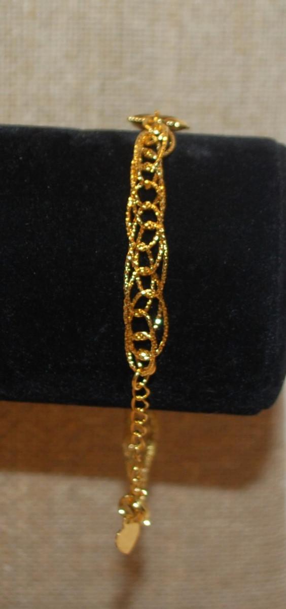 3 HEARTS Gold Colored Bracelet (8") with "Lamay" Style Circles and Lobster Clasp