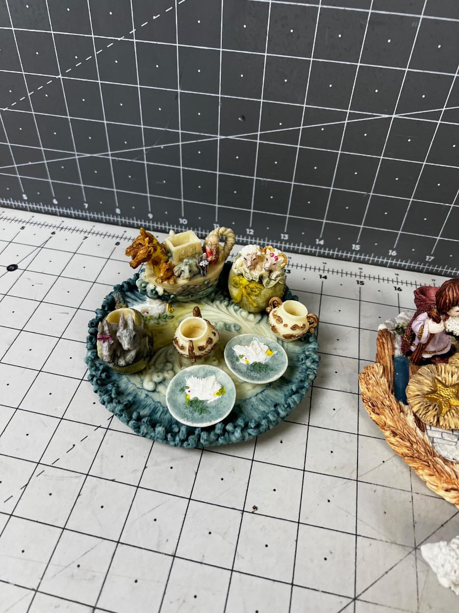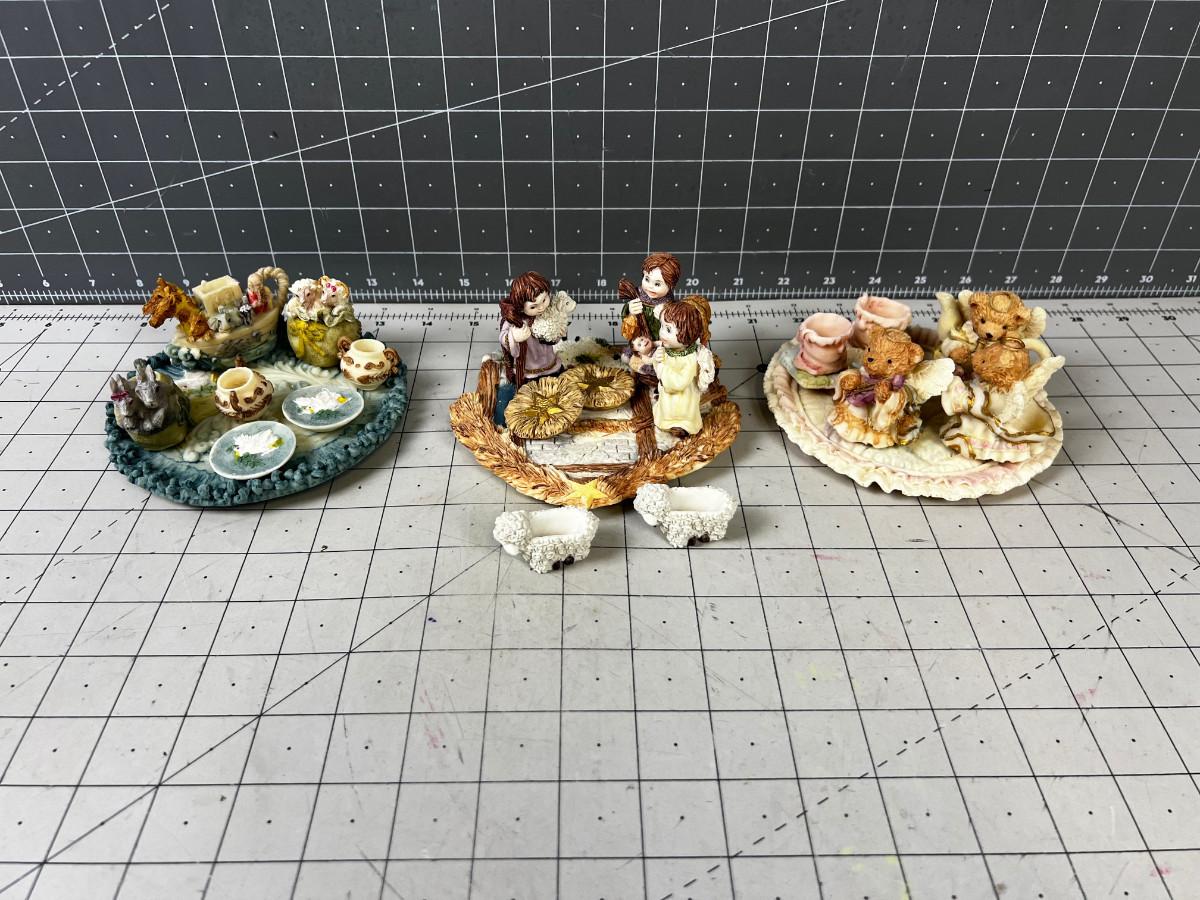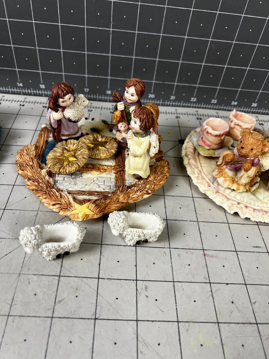 (3) Heavenly: Angles, Jesus, Joseph & Mary Resin Collectible Tiny Tea Parties on Plate