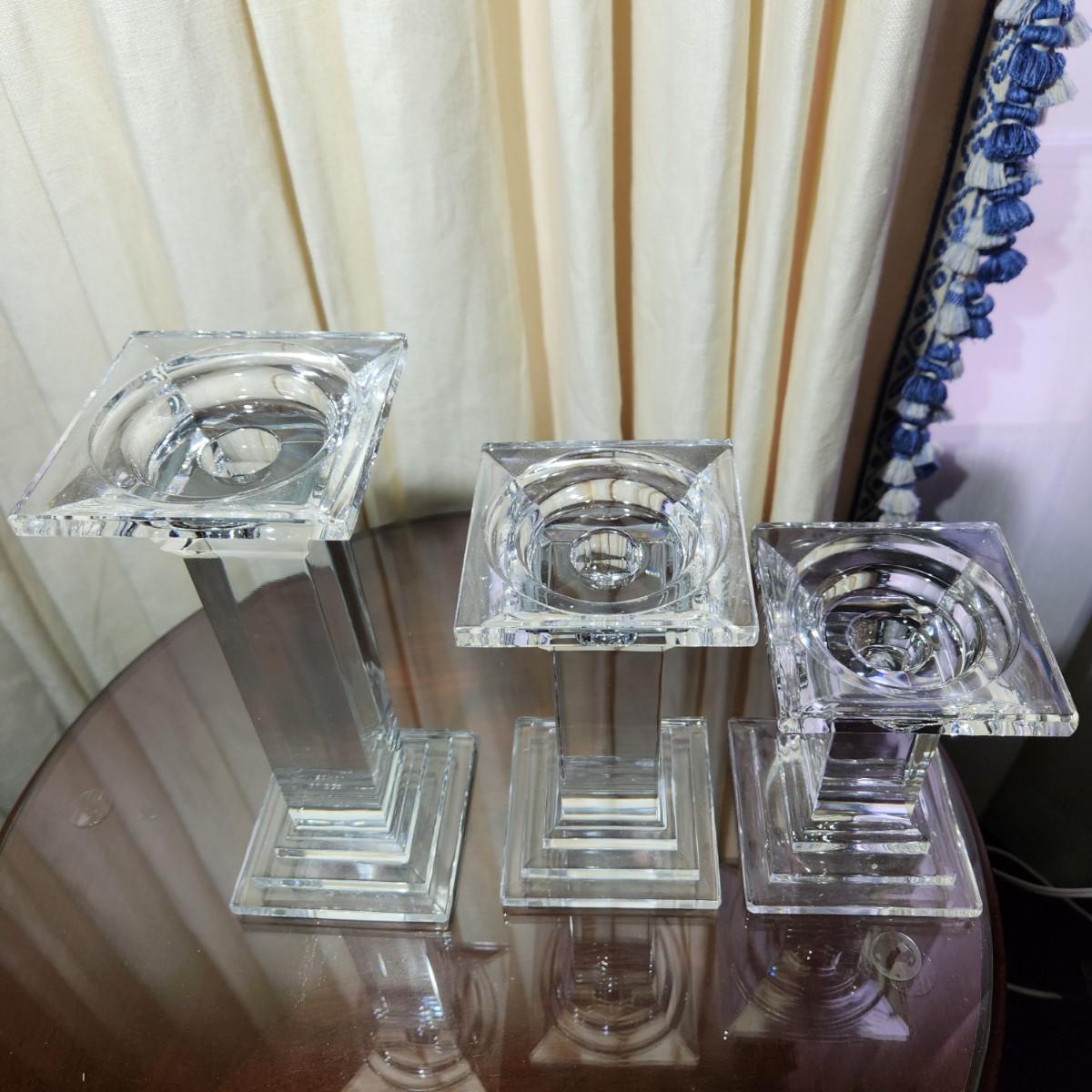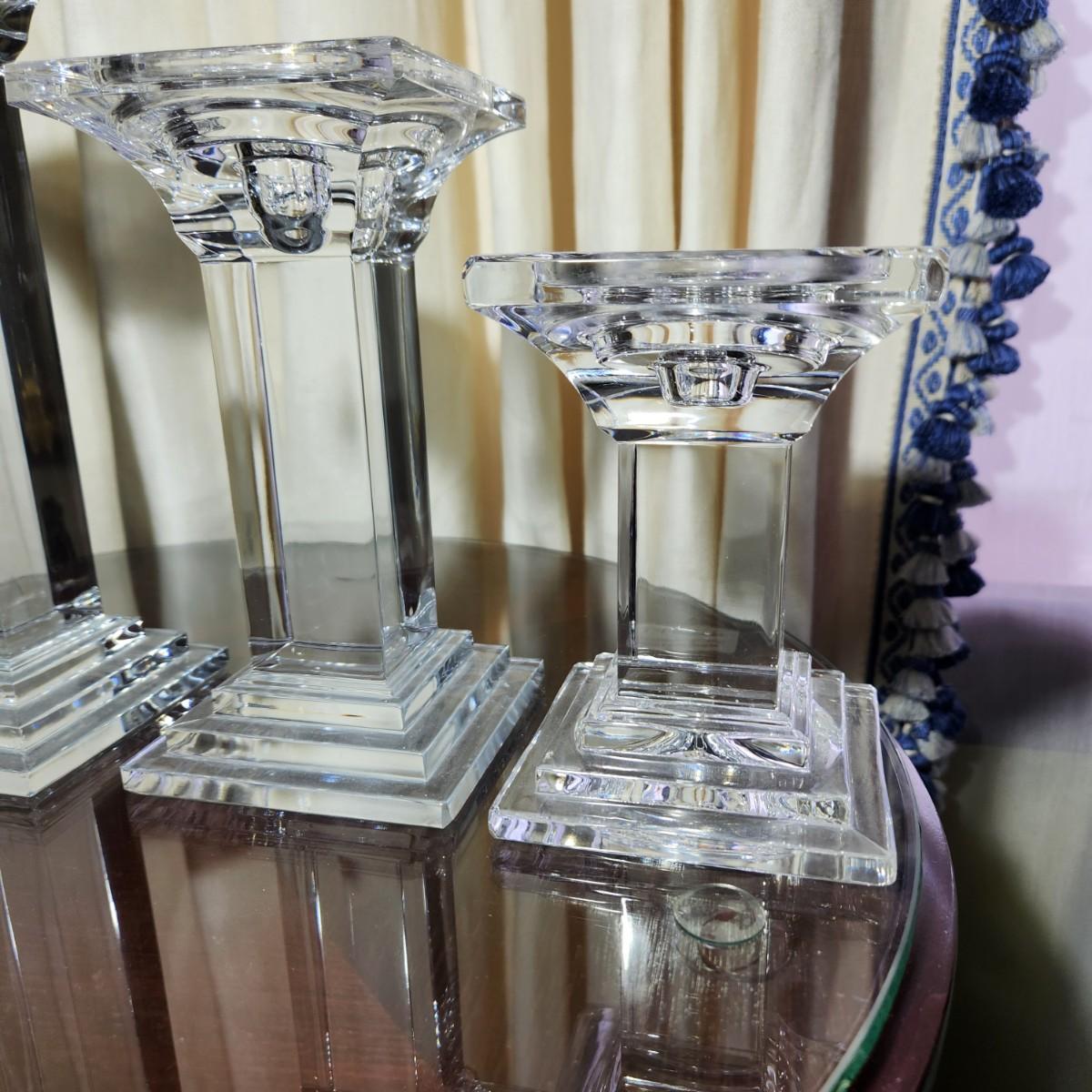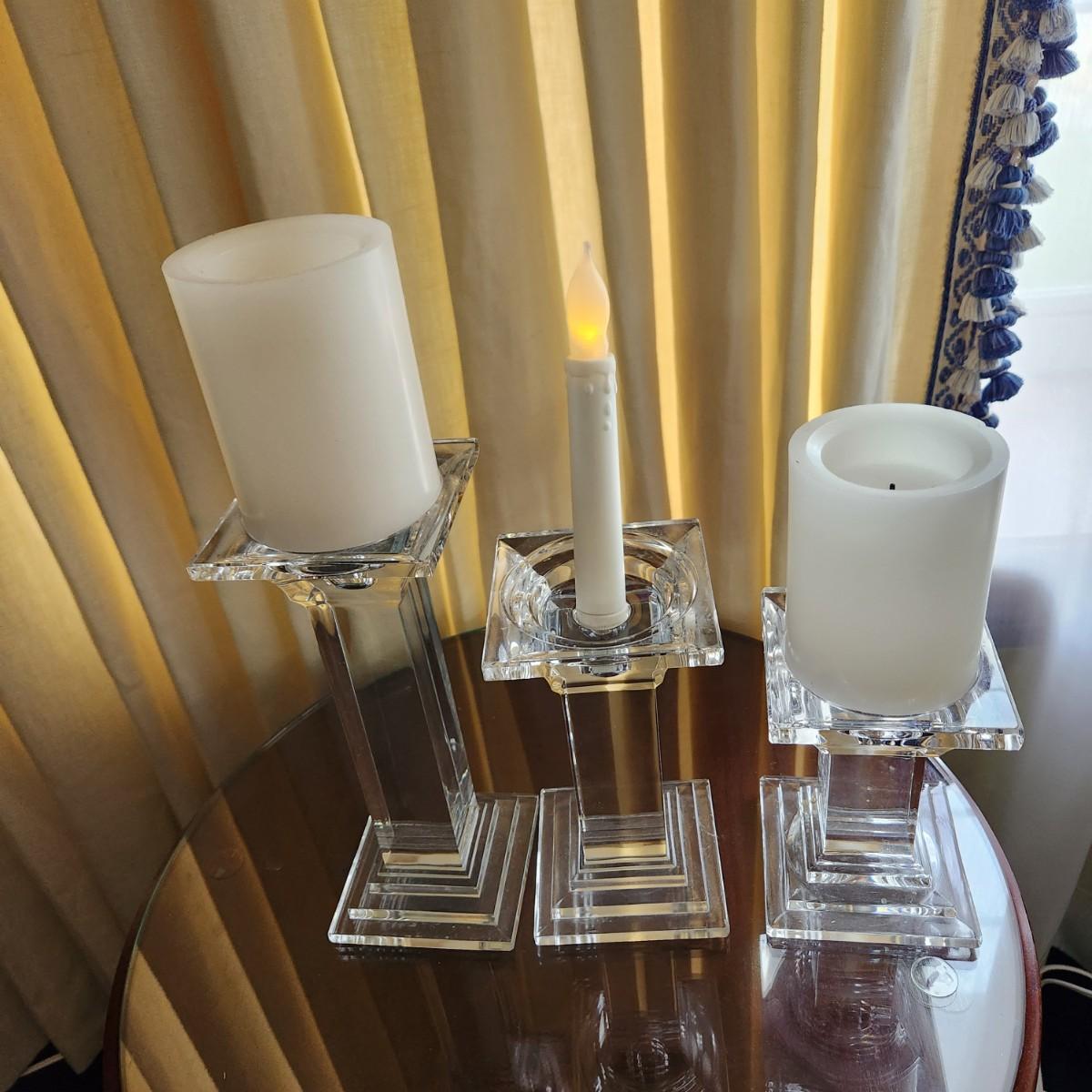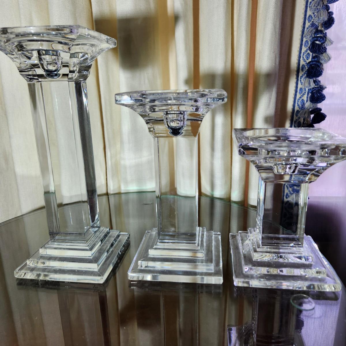 3 Heavy Solid Glass Candlesticks 9" ,7", 5.5"