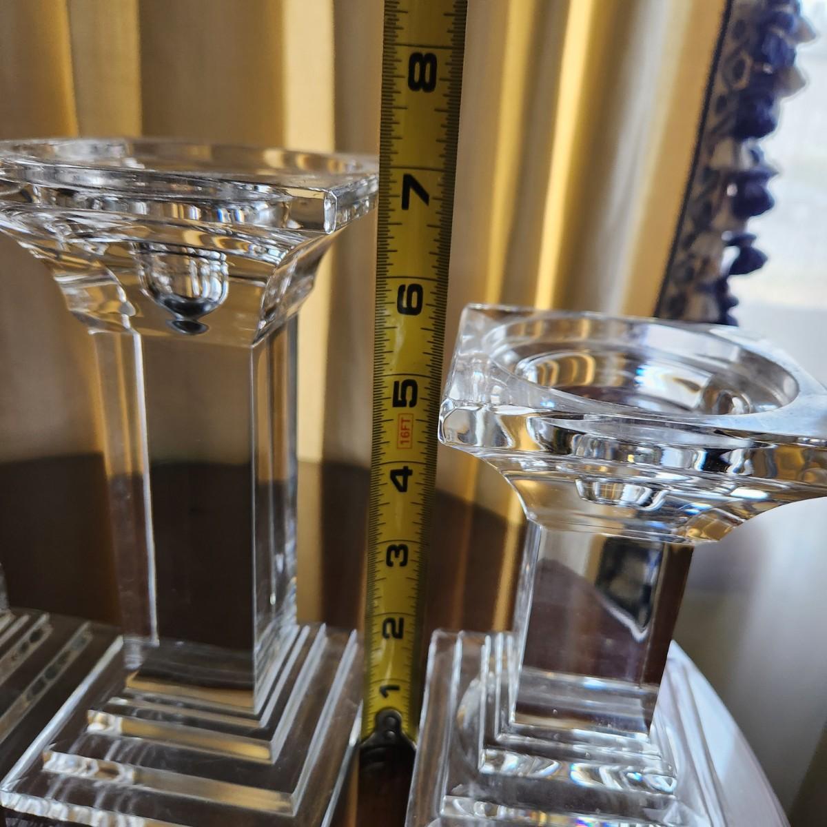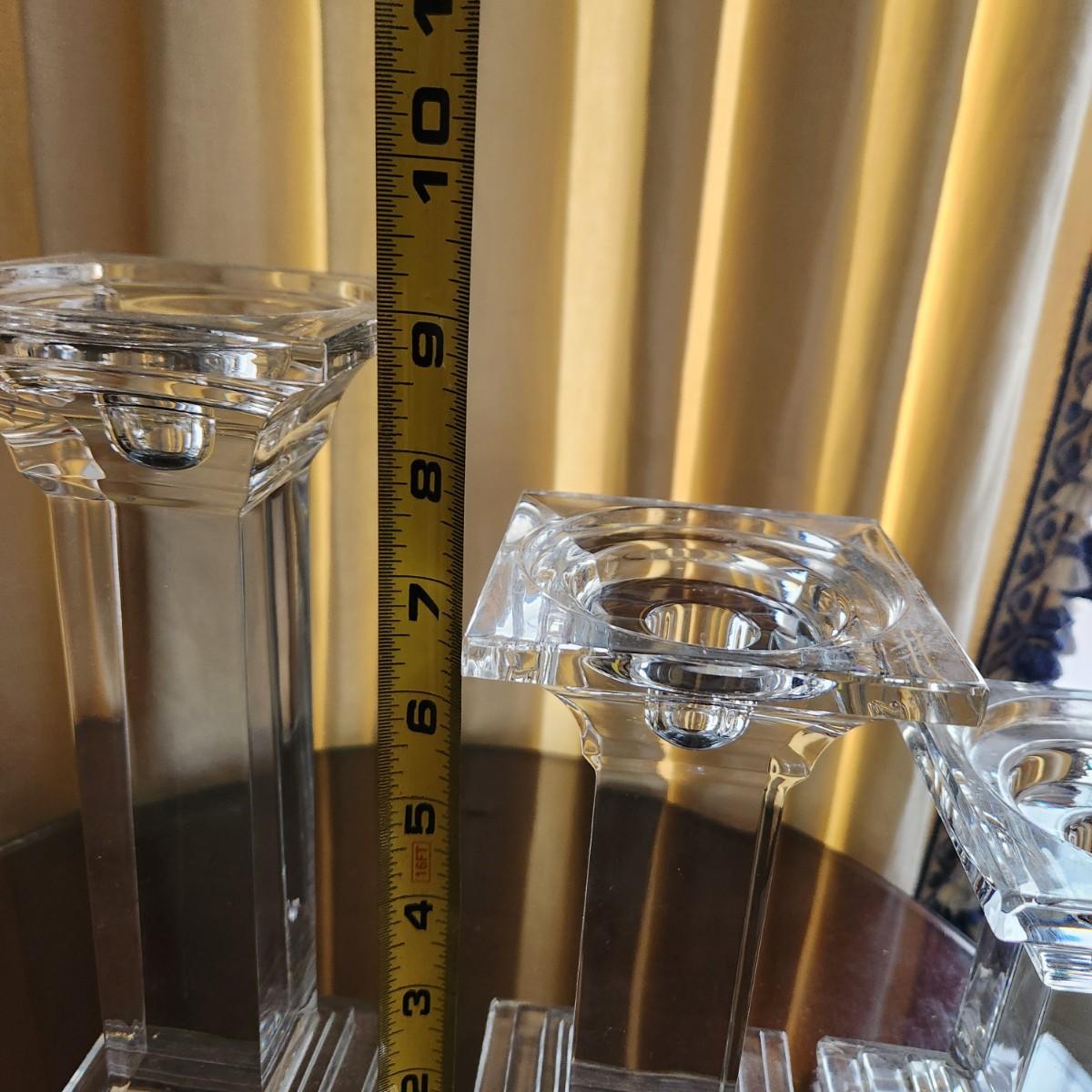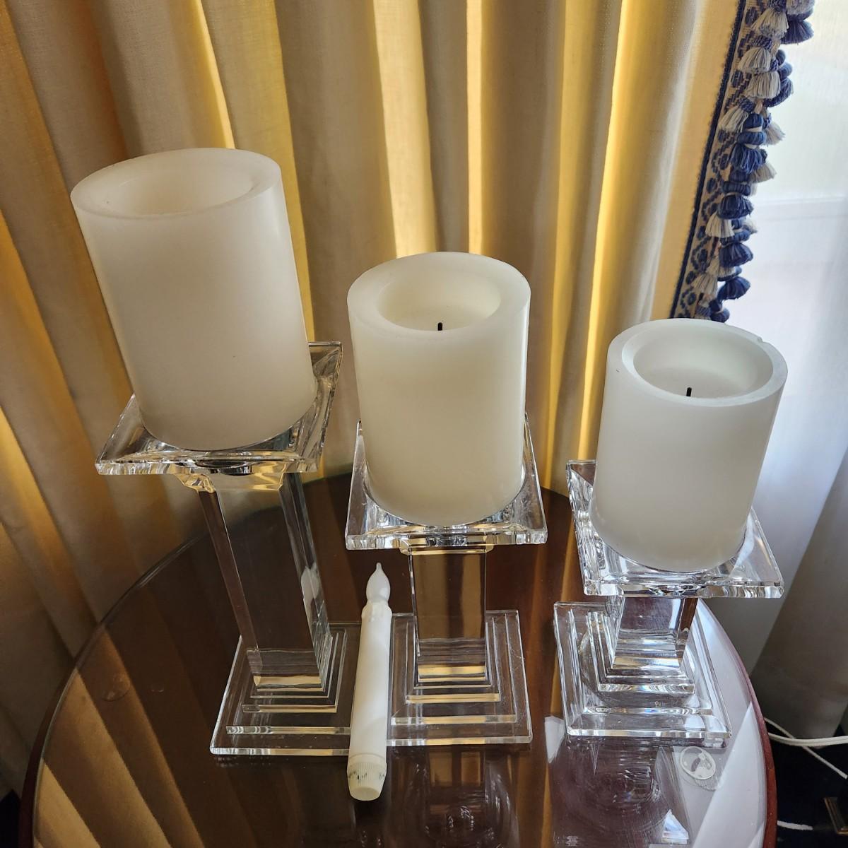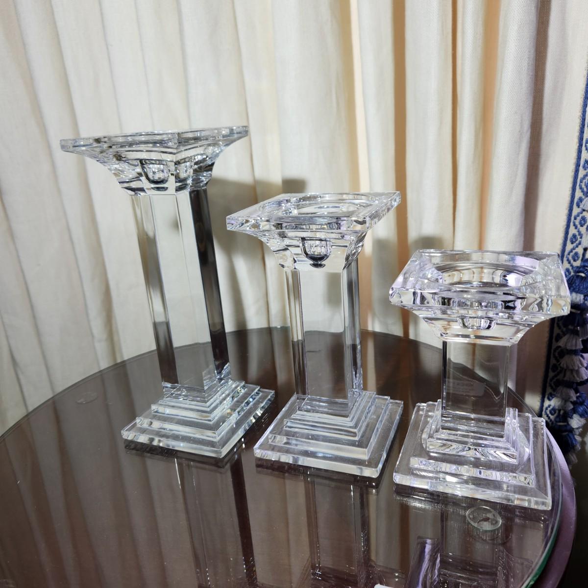 3 Heavy Solid Glass Candlesticks 9" ,7", 5.5"