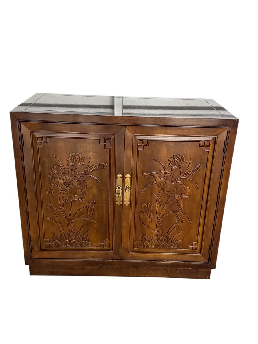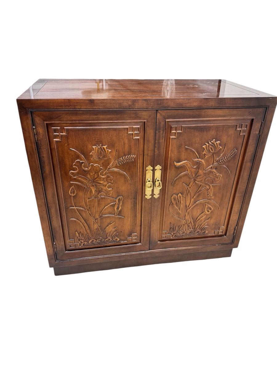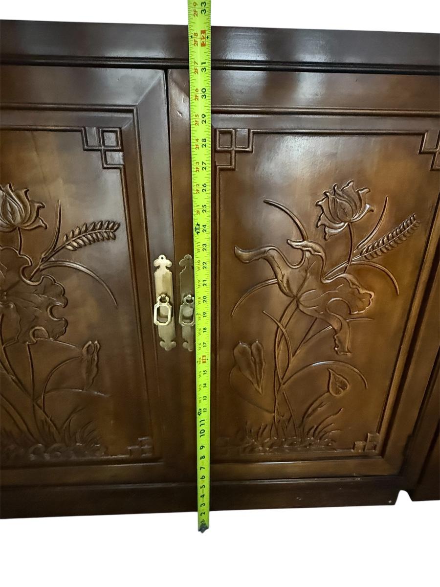 3 Henredon Folio 16 Asian Chinoiserie Floral Carved Oriental Server Cabinet