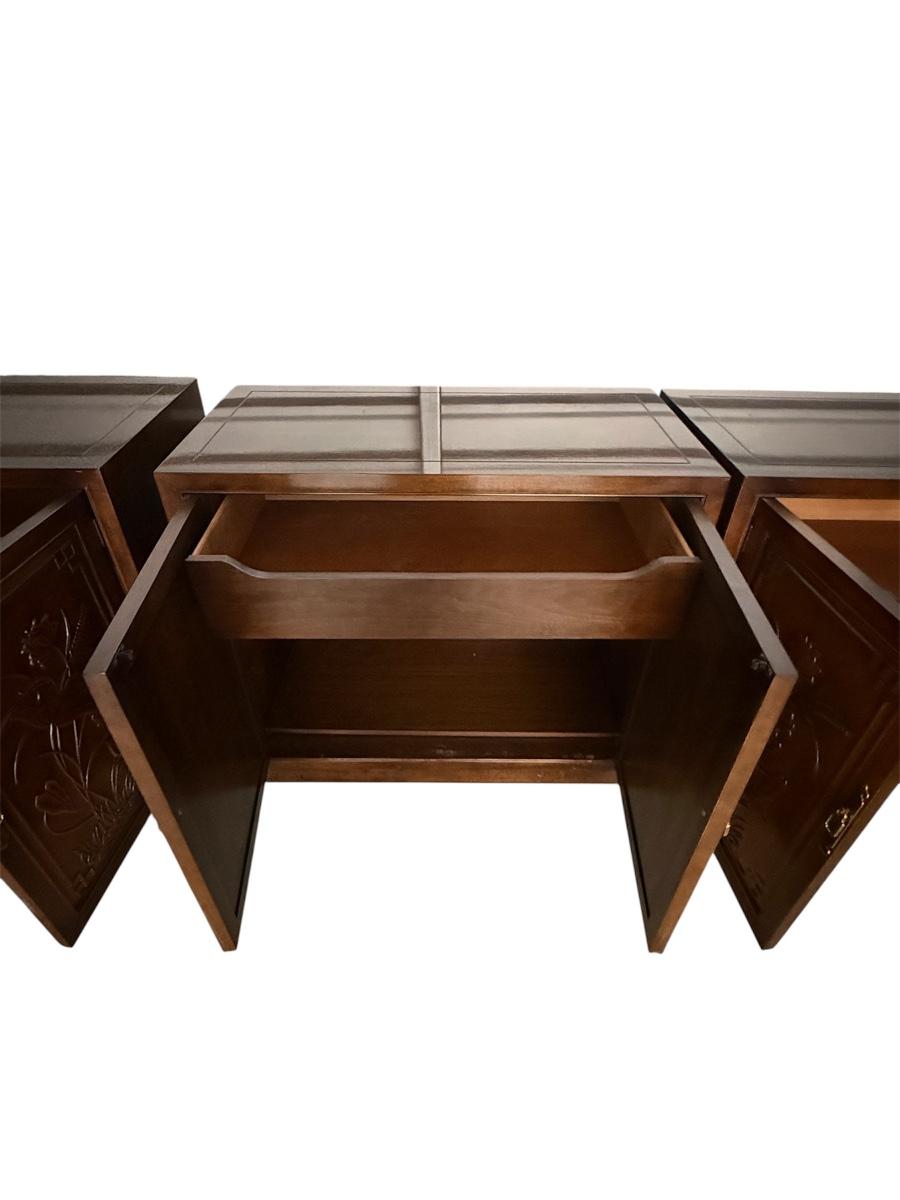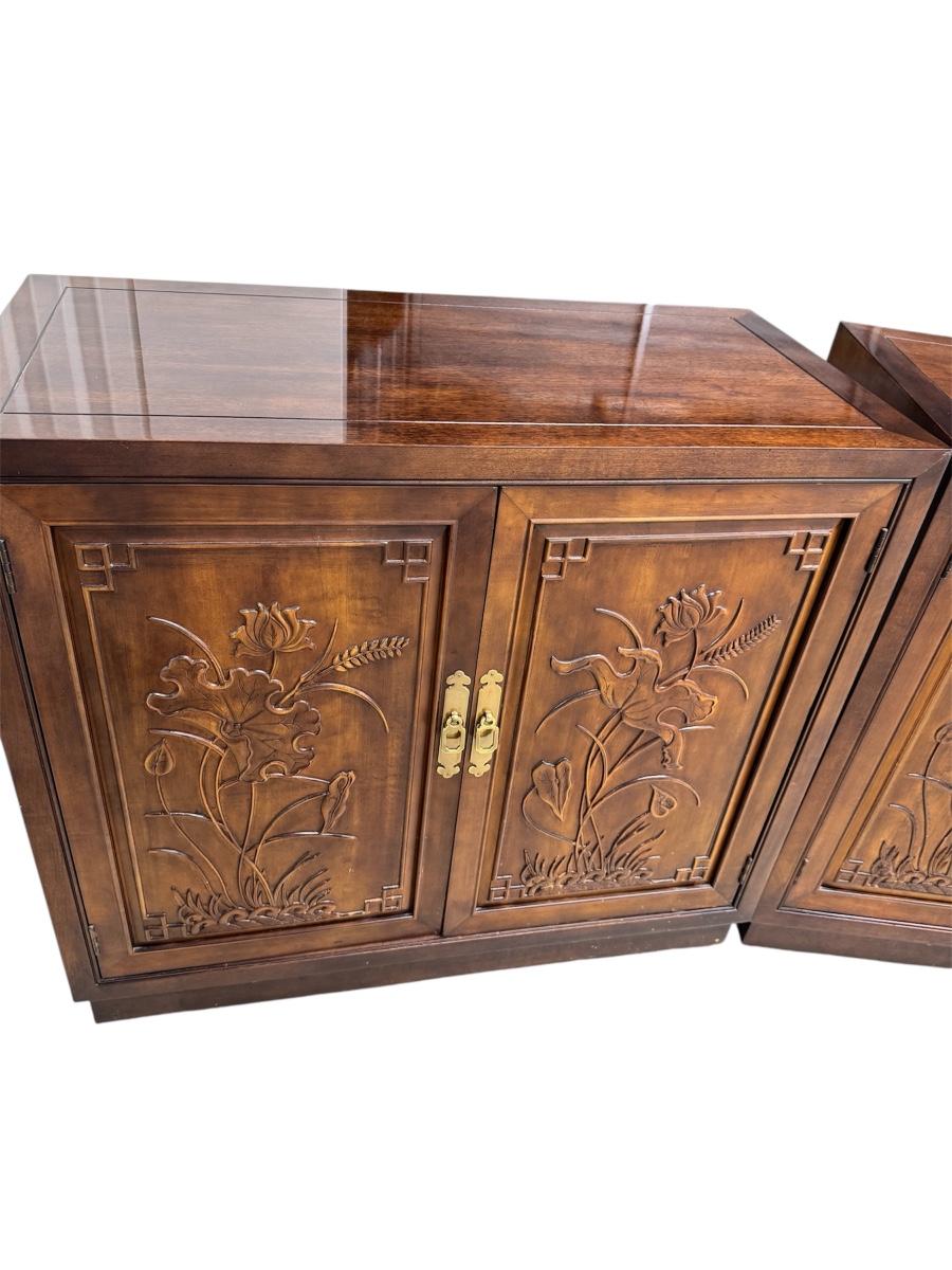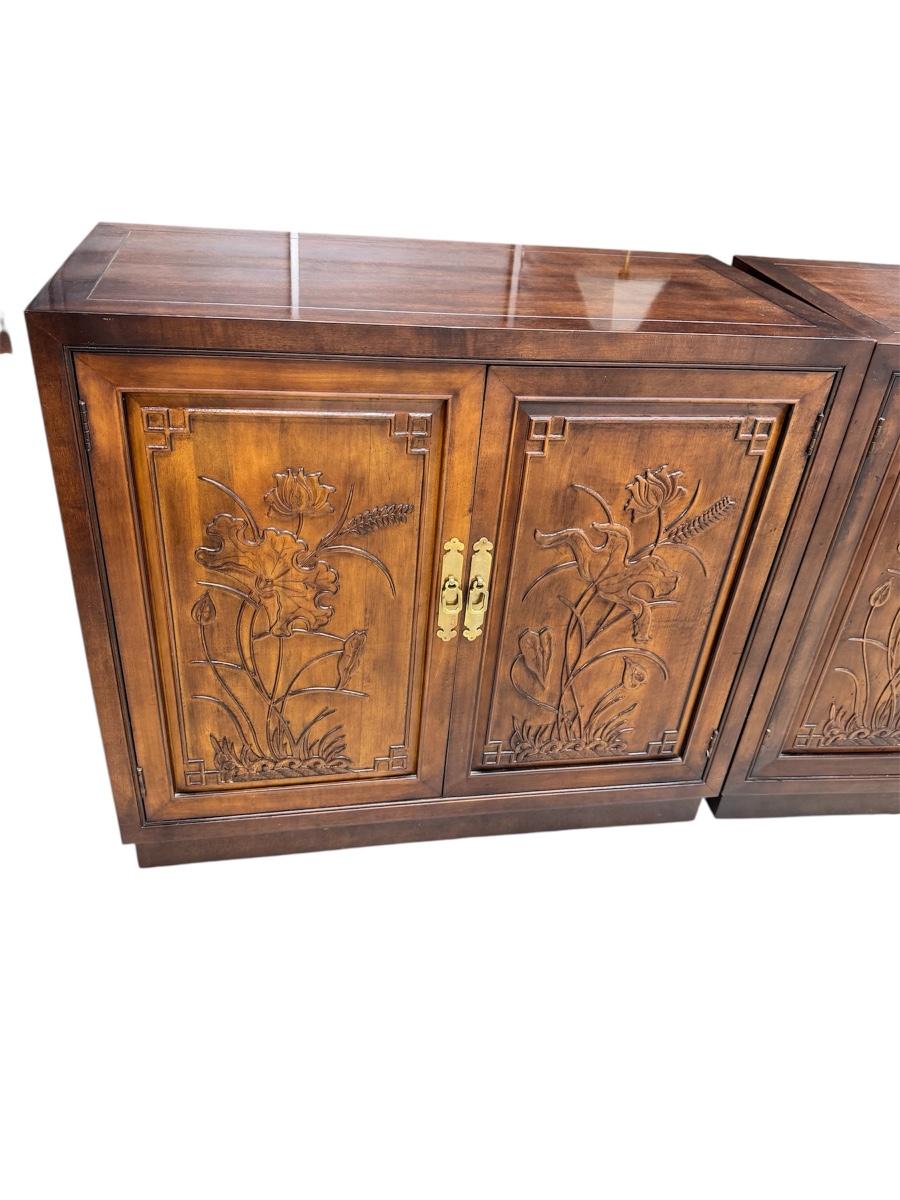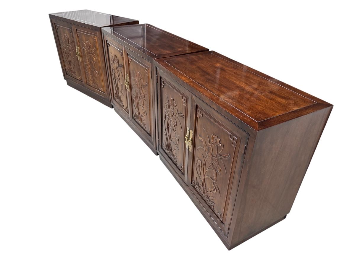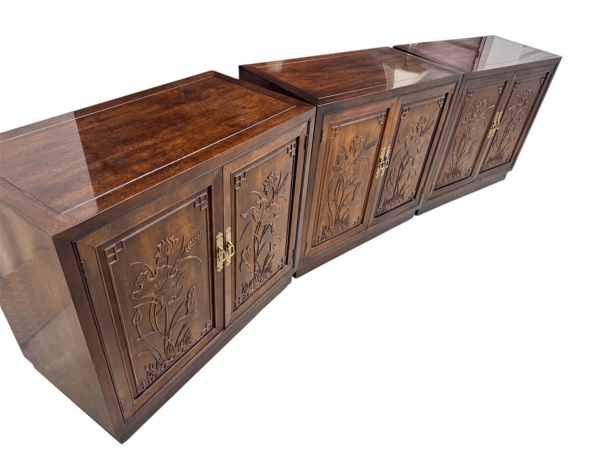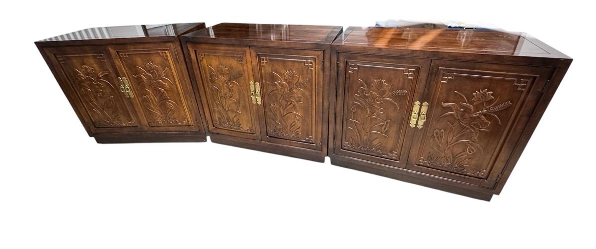 Lot of 3 Henredon Folio 16 Asian Chinoiserie Floral Carved Oriental Server Cabinet