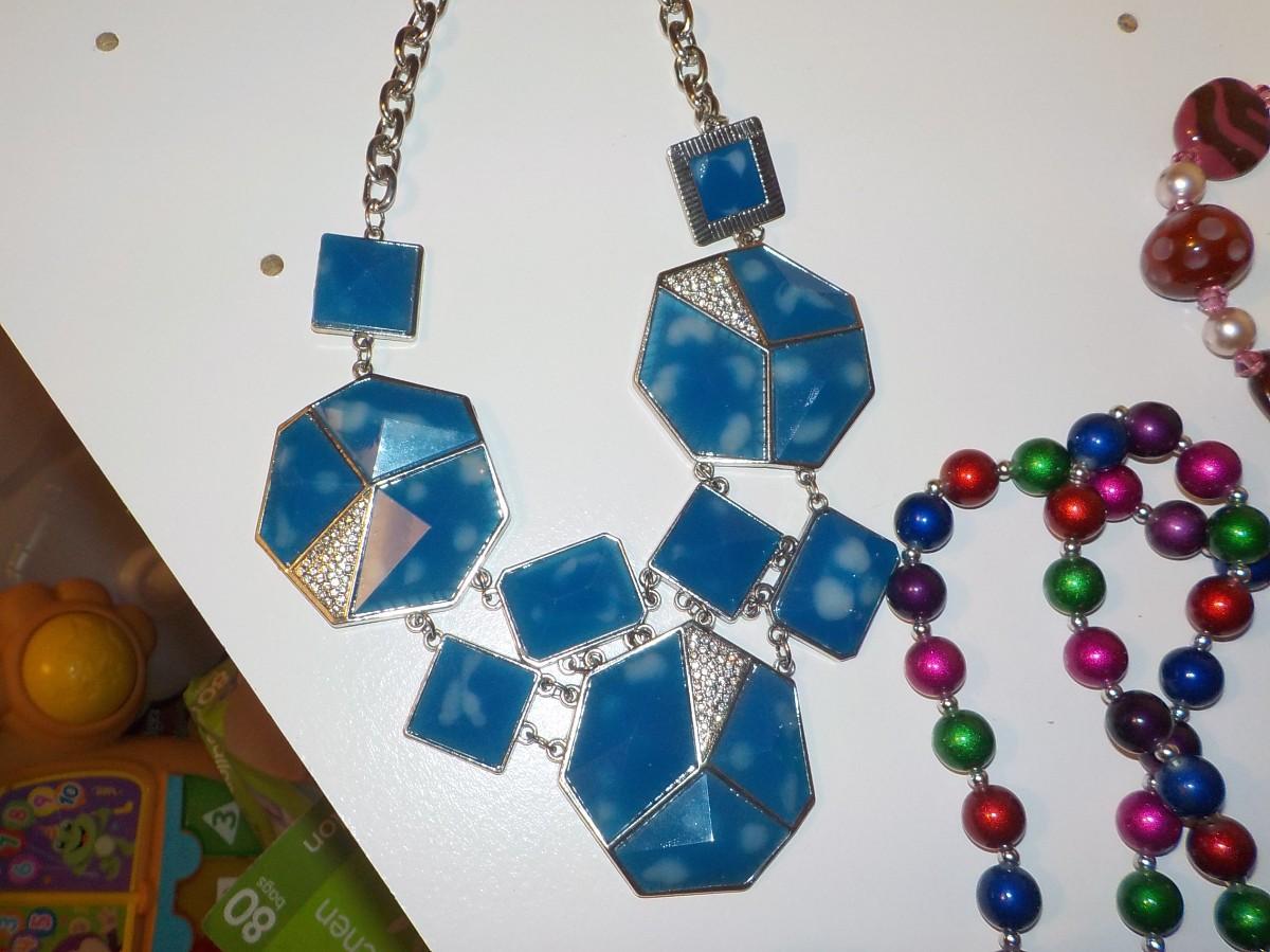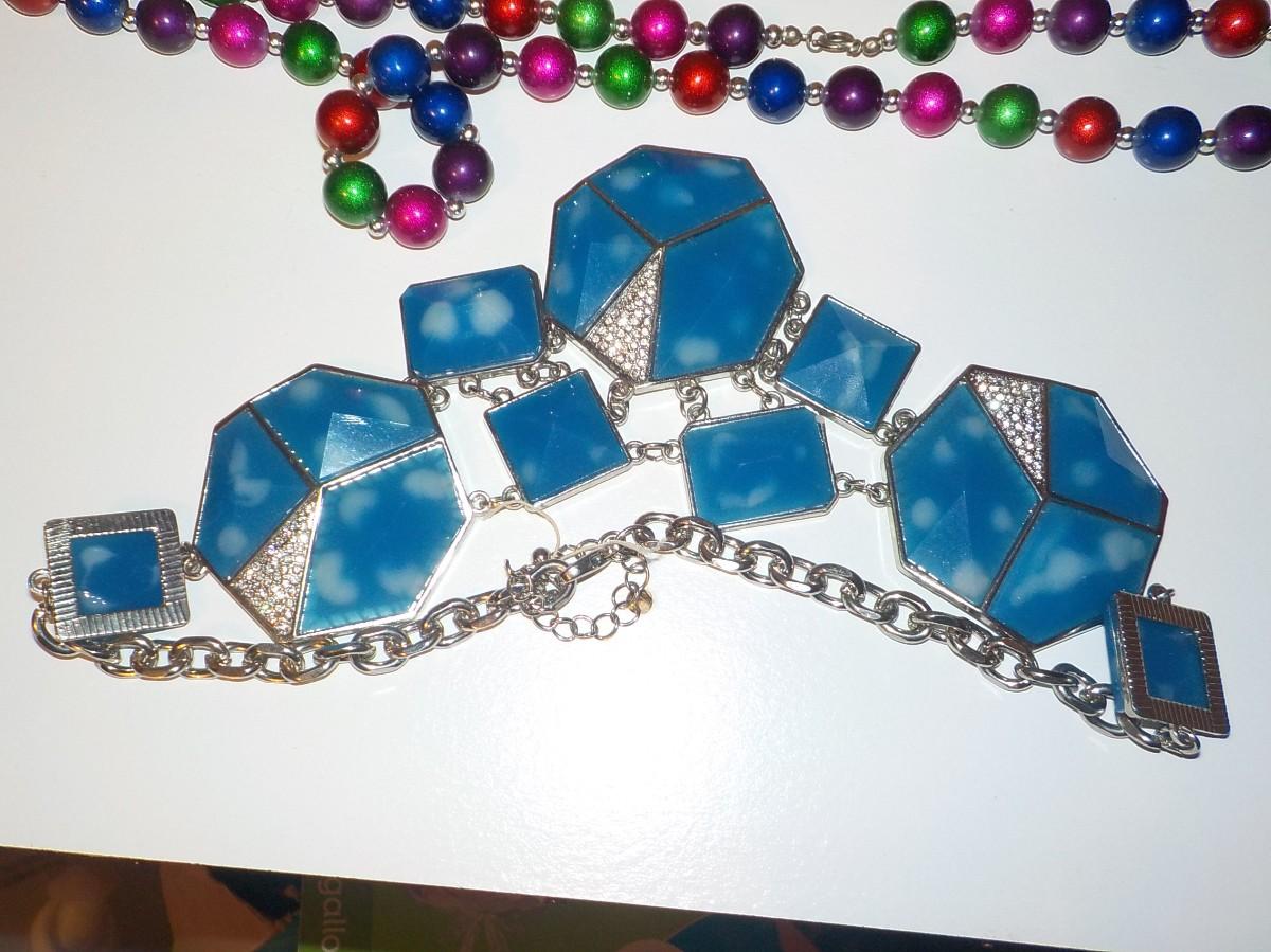 One has semi precious stones , beads, art work blue.
