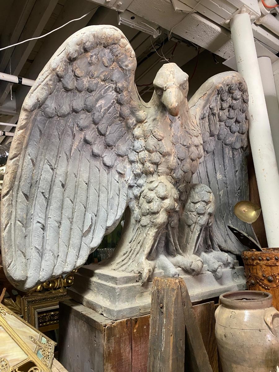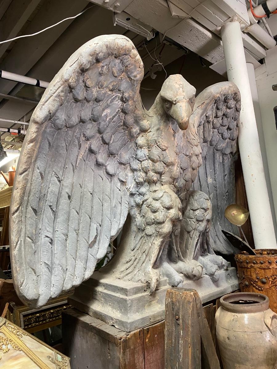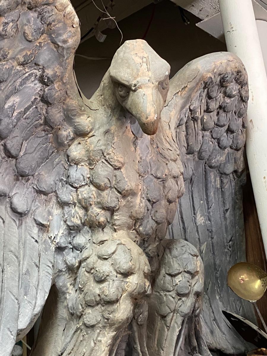 A true statement piece. at 3 feet tall, Giant resin fabricated eagle. Some wear on surface, but a very solid and heavy piece!